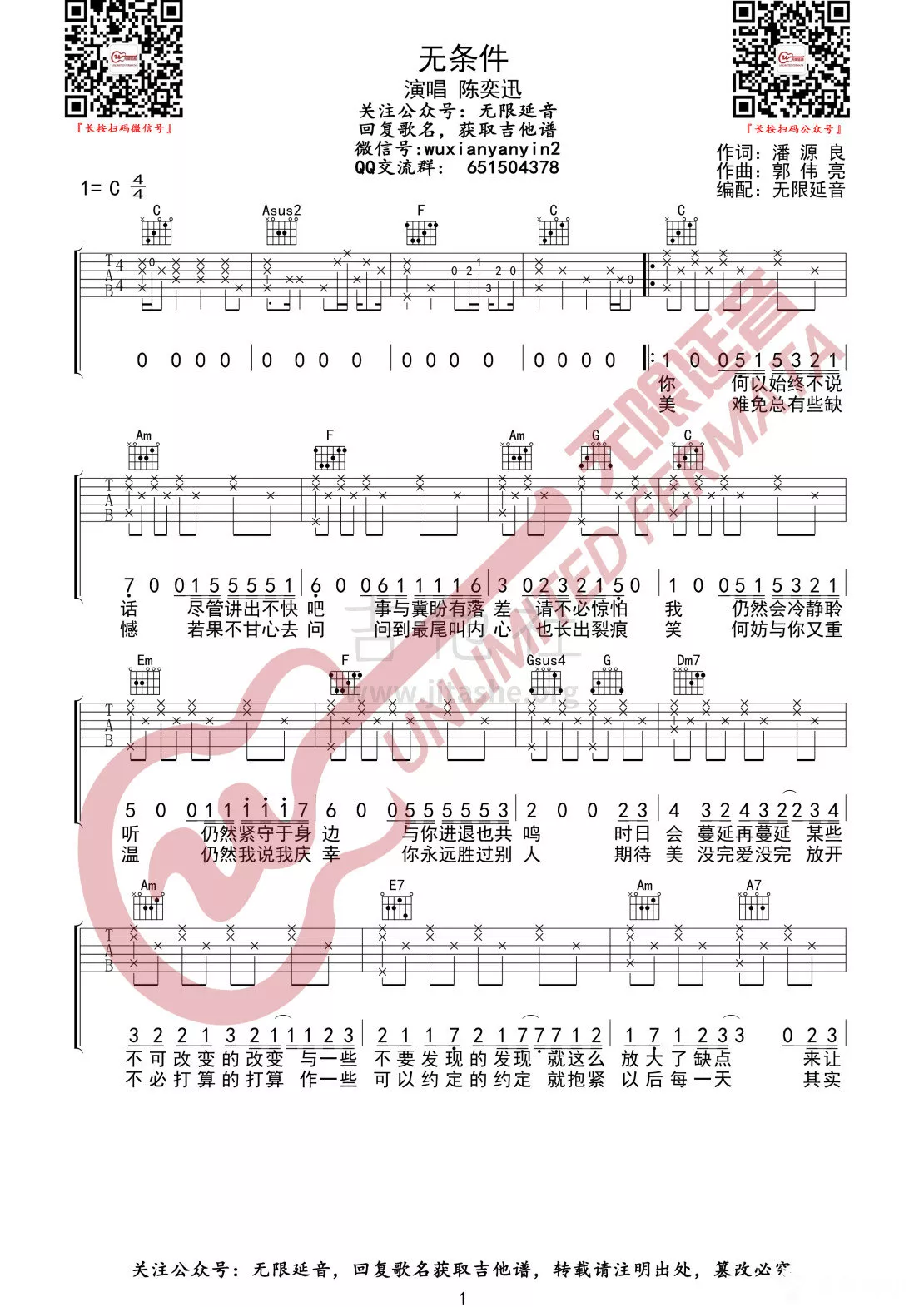 无条件吉他谱 - 陈奕迅 - C调吉他弹唱谱