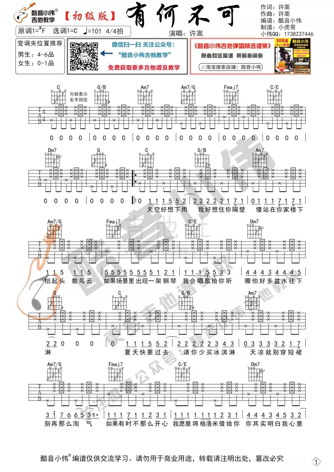 有何不可吉他谱 - 许嵩 - C调吉他弹唱谱