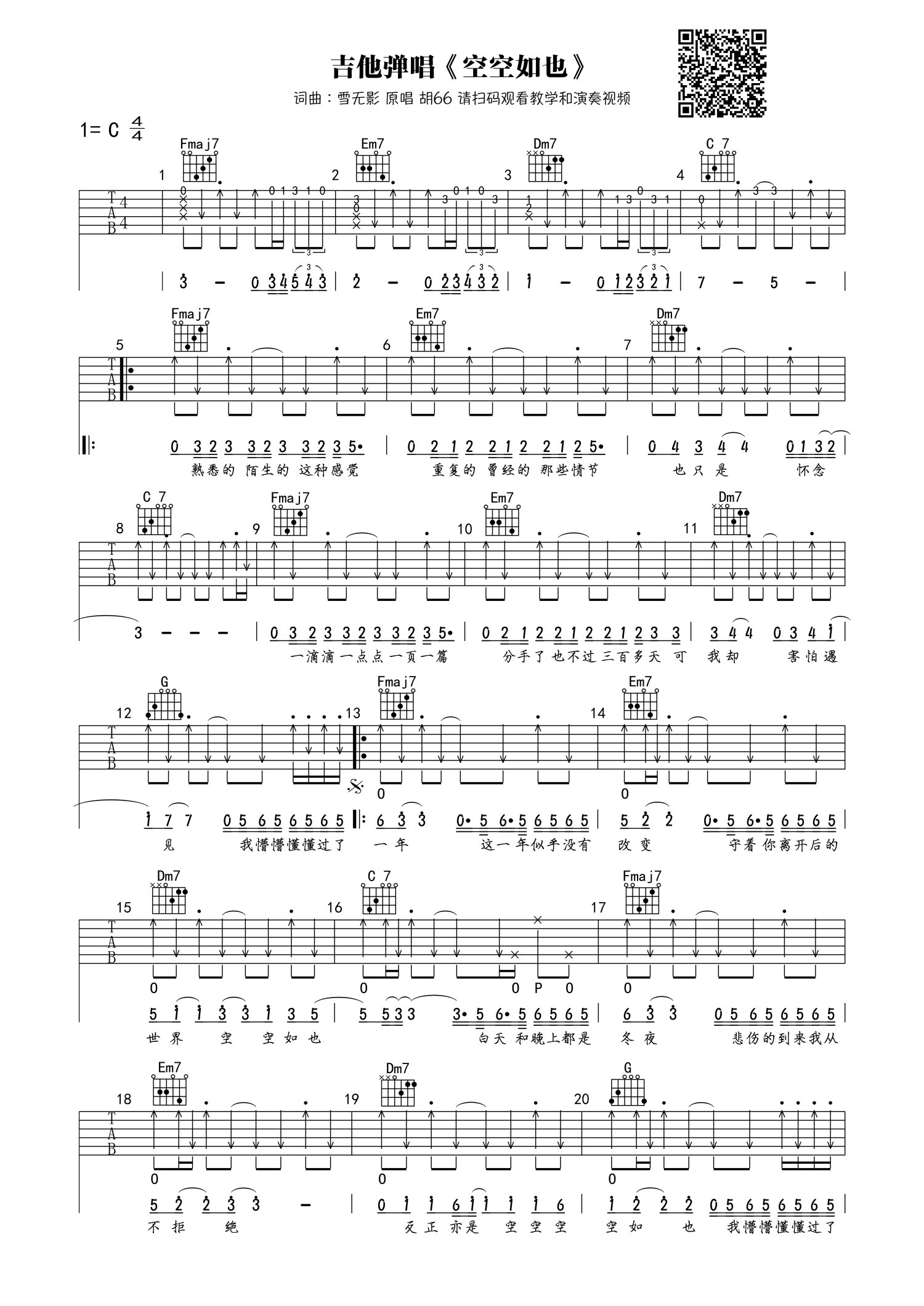 • 空空如也吉他谱 - 胡66 - C调吉他弹唱谱第1张