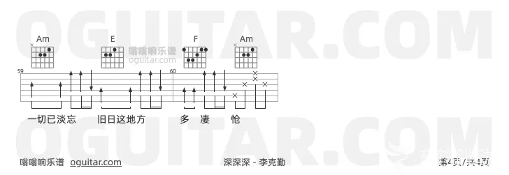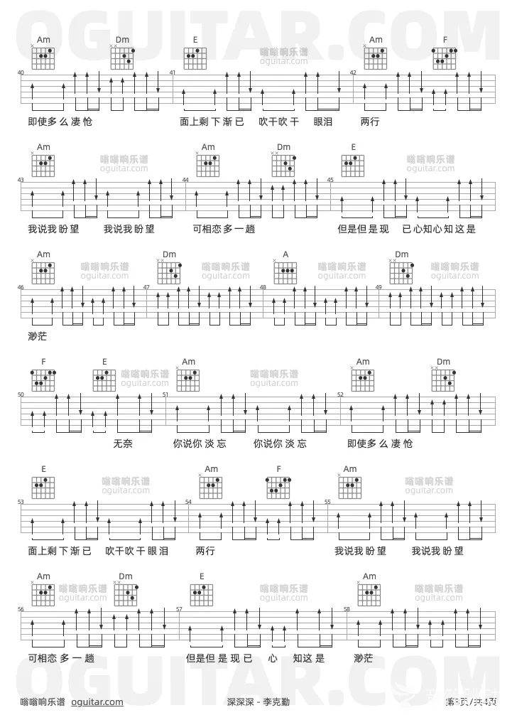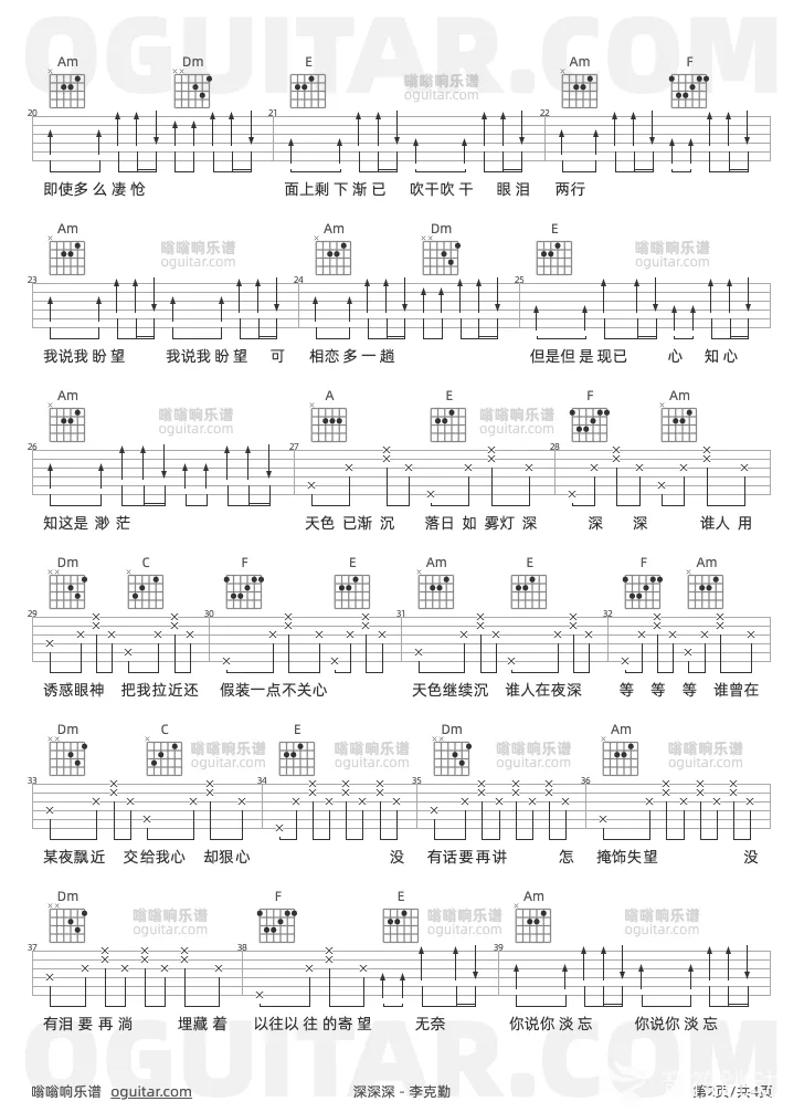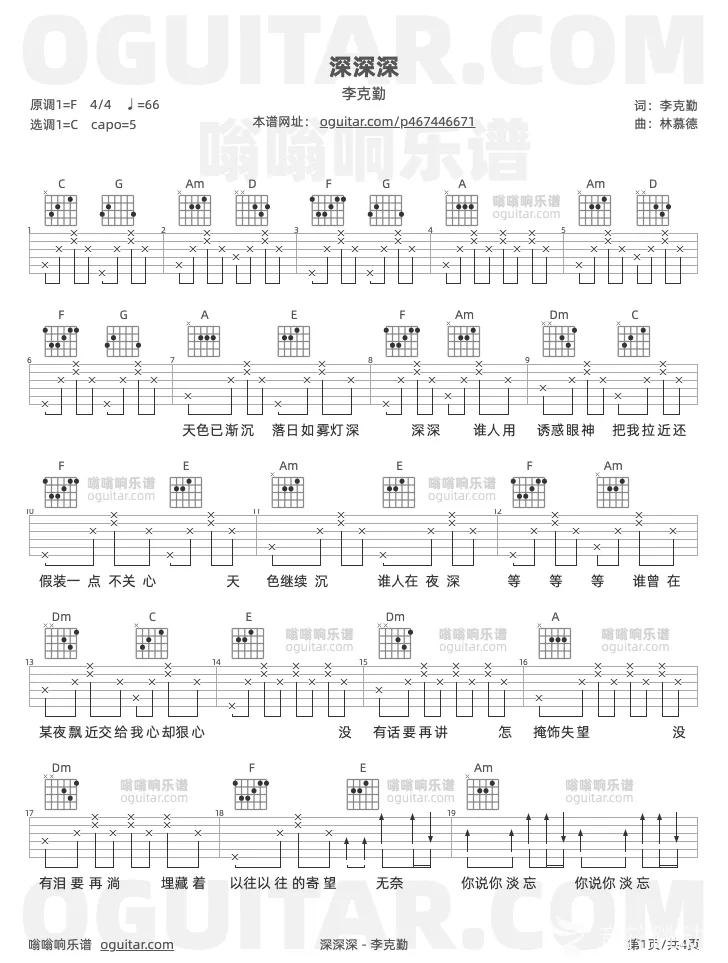 曲谱介绍: 李克勤《深深深》吉他弹唱谱,共有3张高清图谱。
