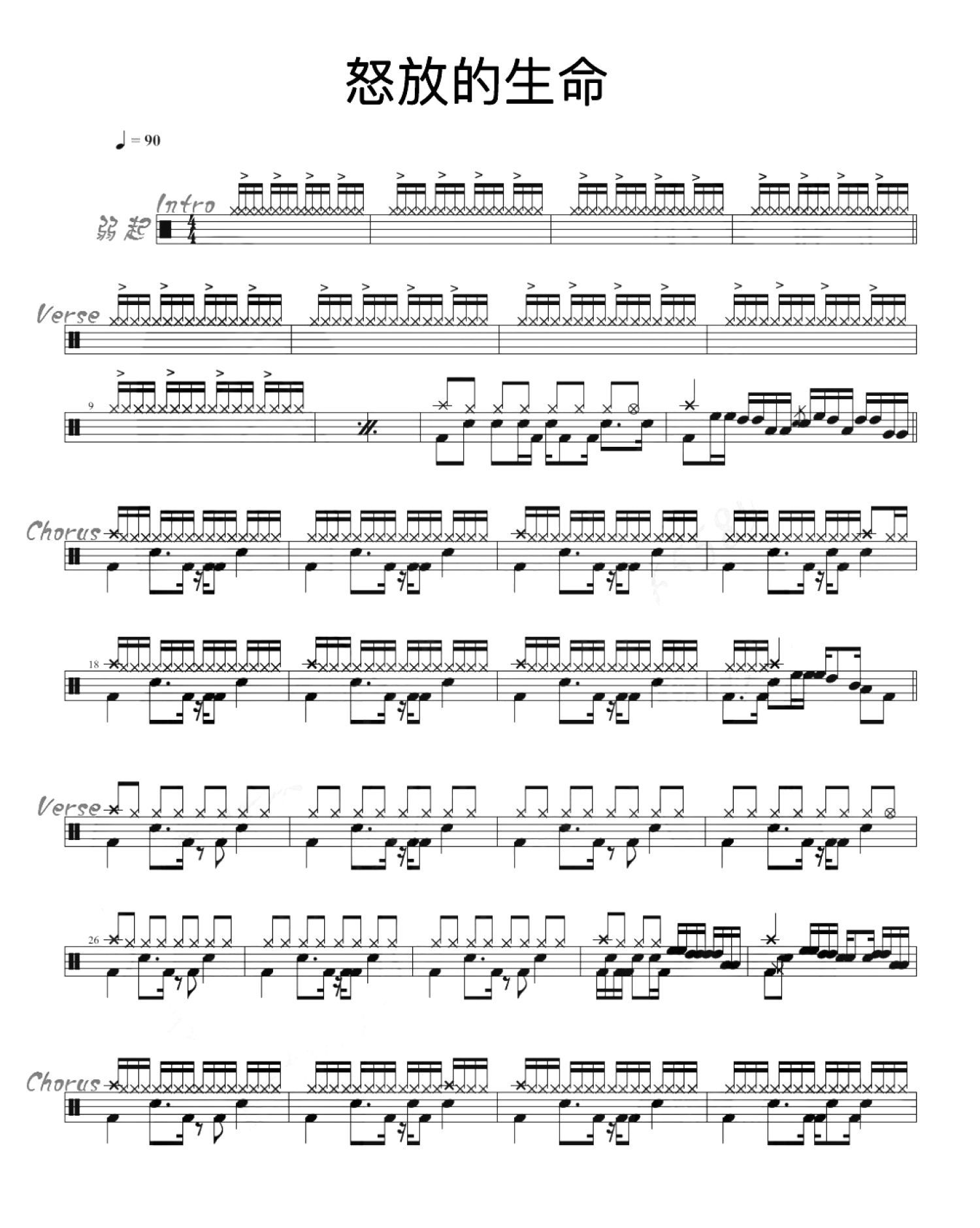 怒放的生命鼓谱 - 汪峰 - 架子鼓谱