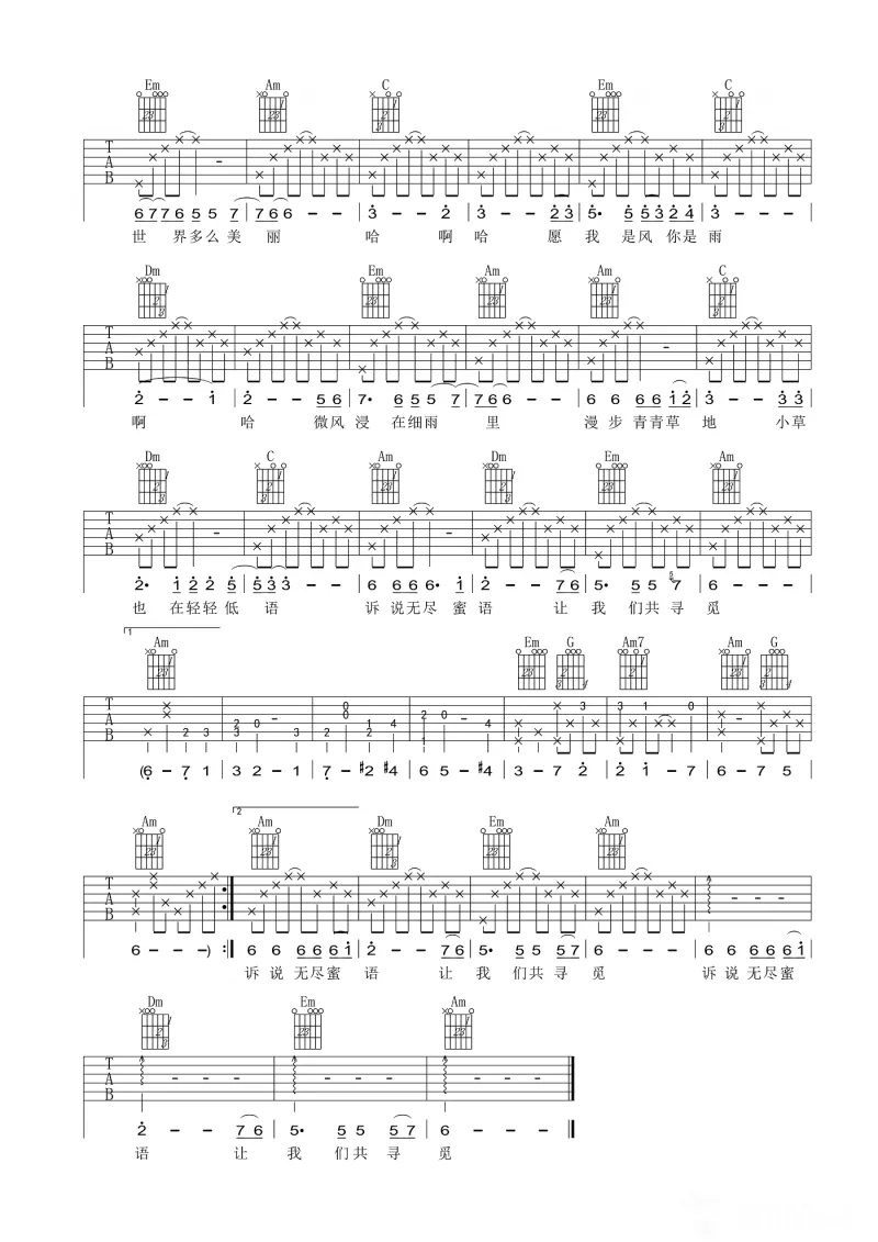 当前位置:琴谱网>吉他弹唱>微风细雨