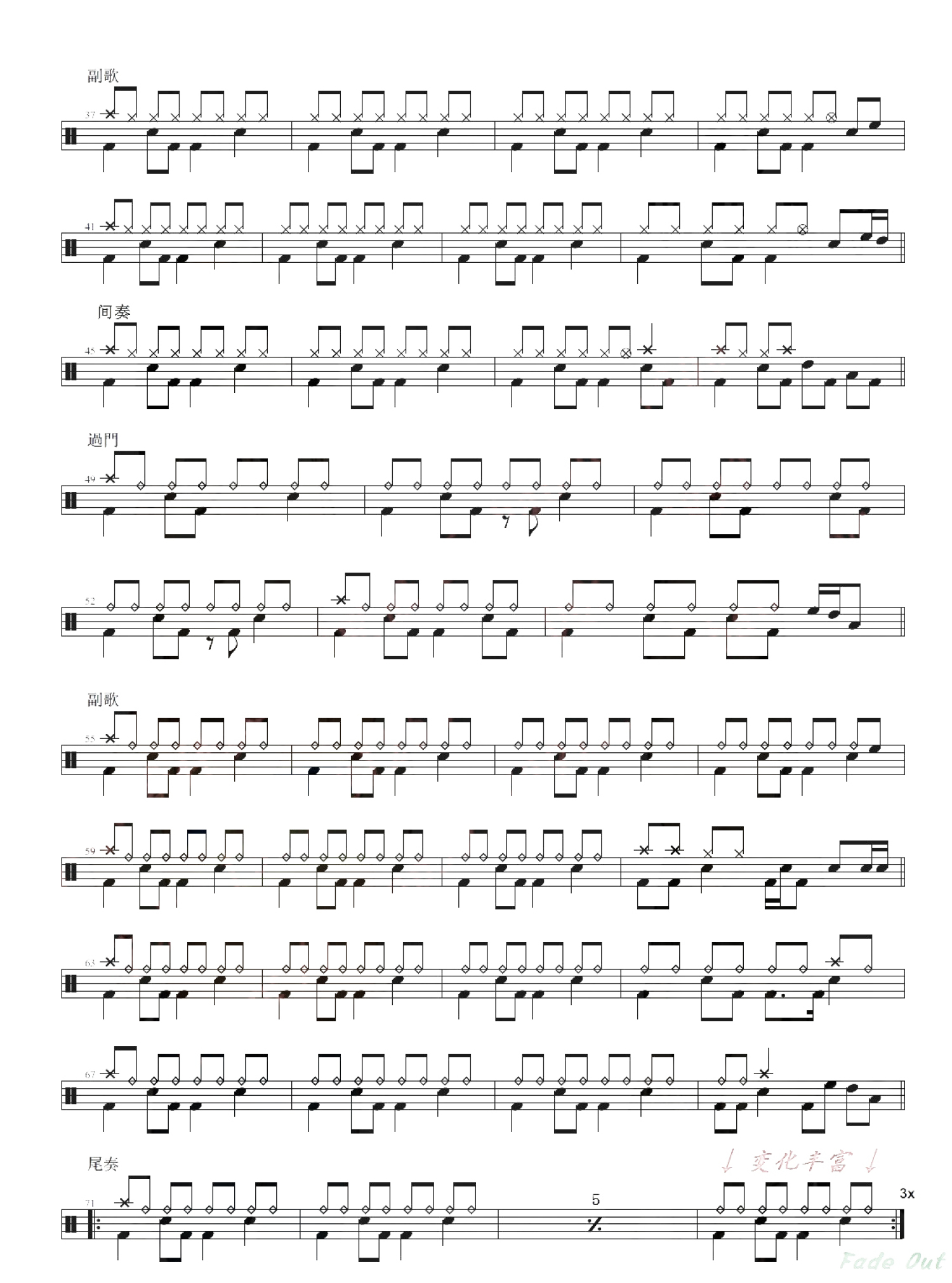 我是一只鱼鼓谱 - 任贤齐 - 架子鼓谱