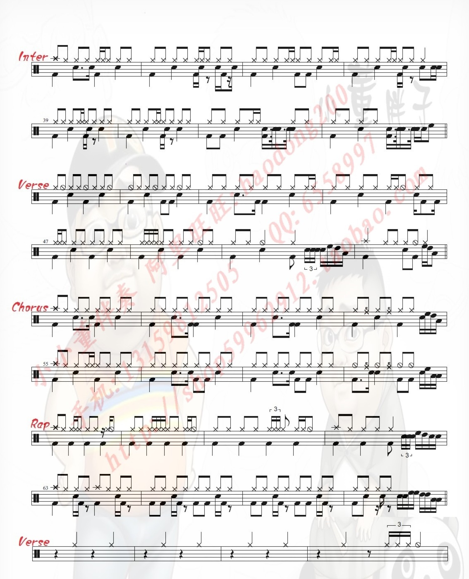 曲谱介绍: 爸爸去哪儿(架子鼓谱)