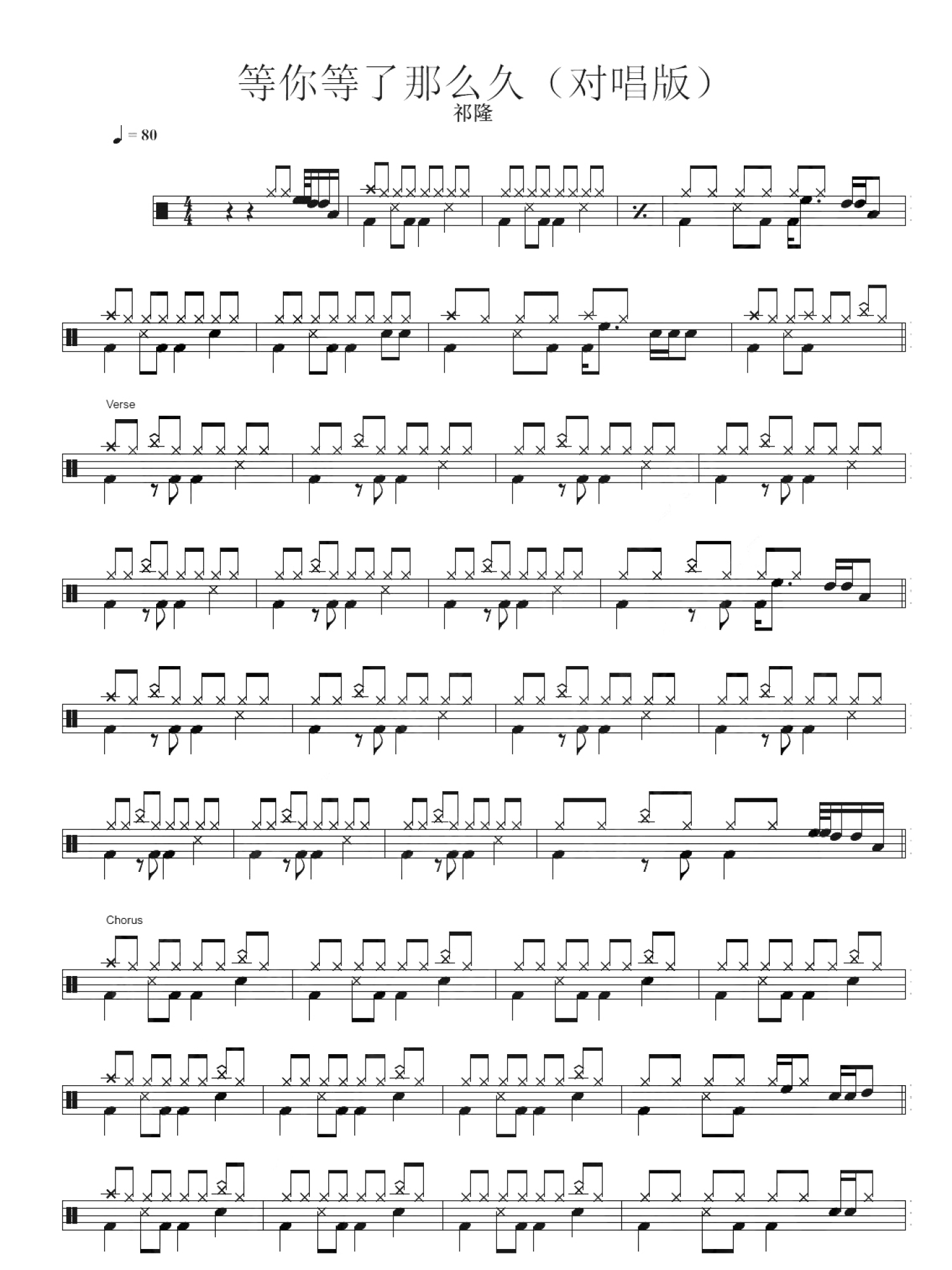 曲谱介绍: 等你等了那么久(架子鼓谱)-祁隆