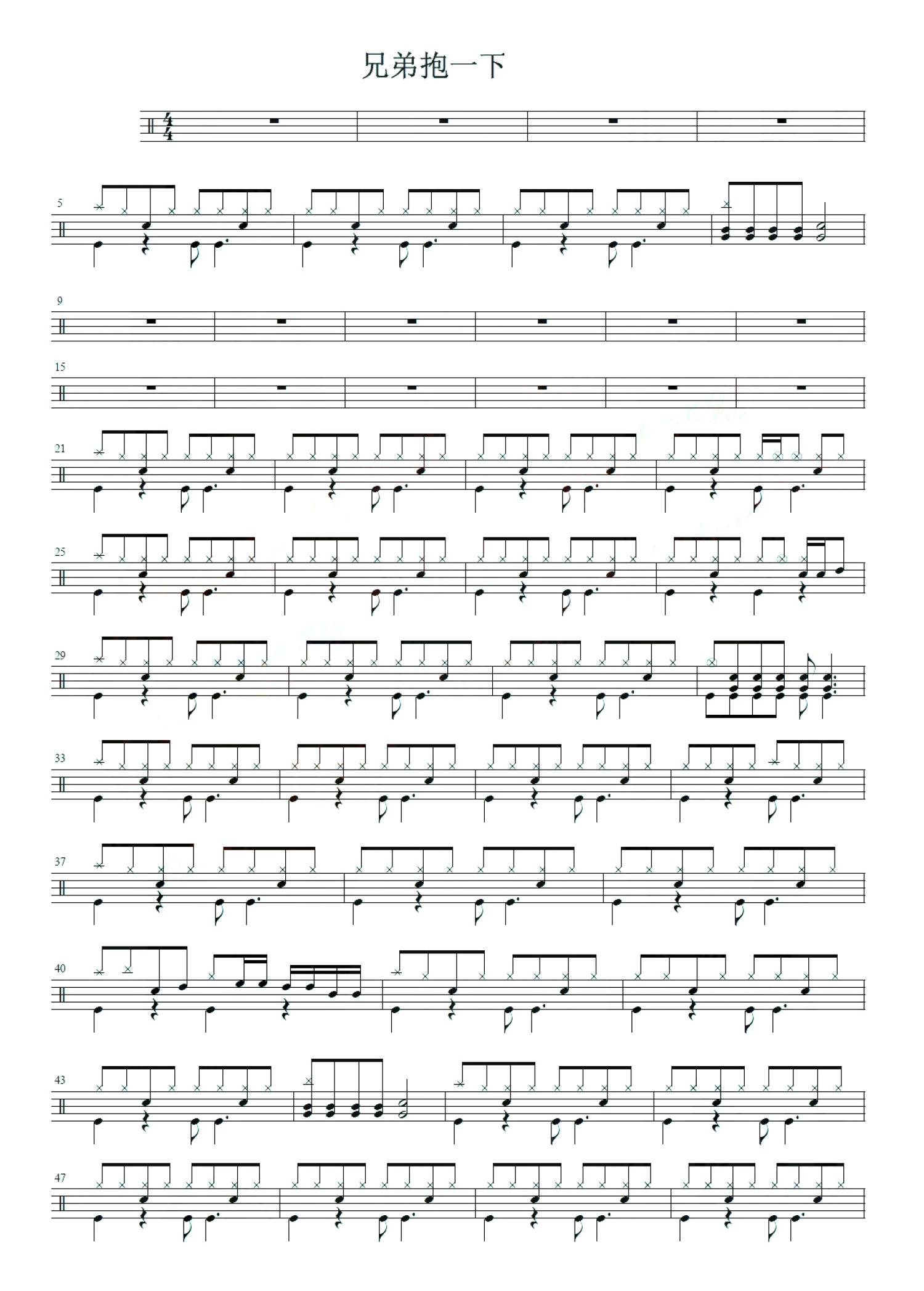 • 兄弟抱一下鼓谱 - 庞龙 - 架子鼓谱第1张