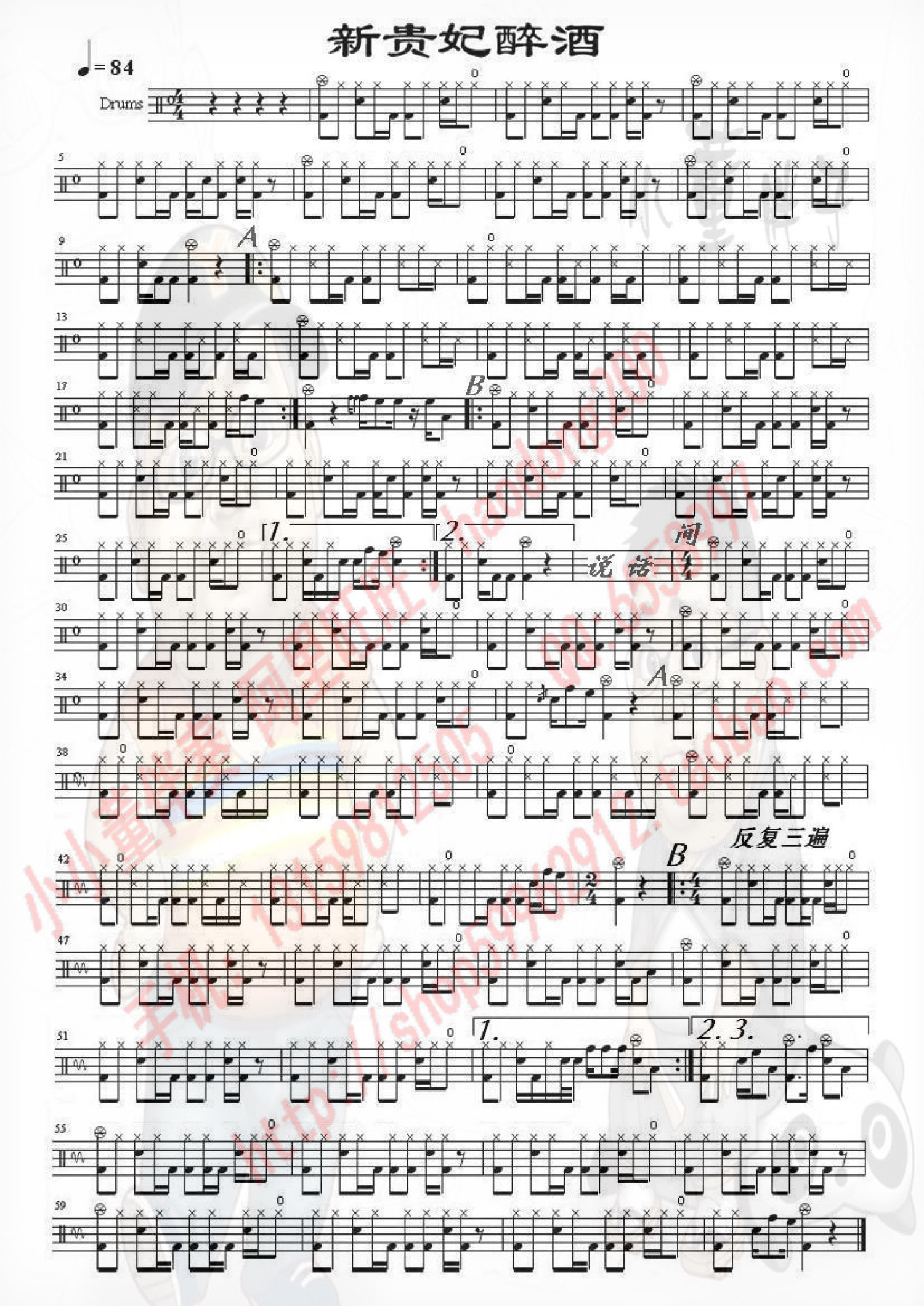 新贵妃醉酒鼓谱 - 李玉刚 - 架子鼓谱