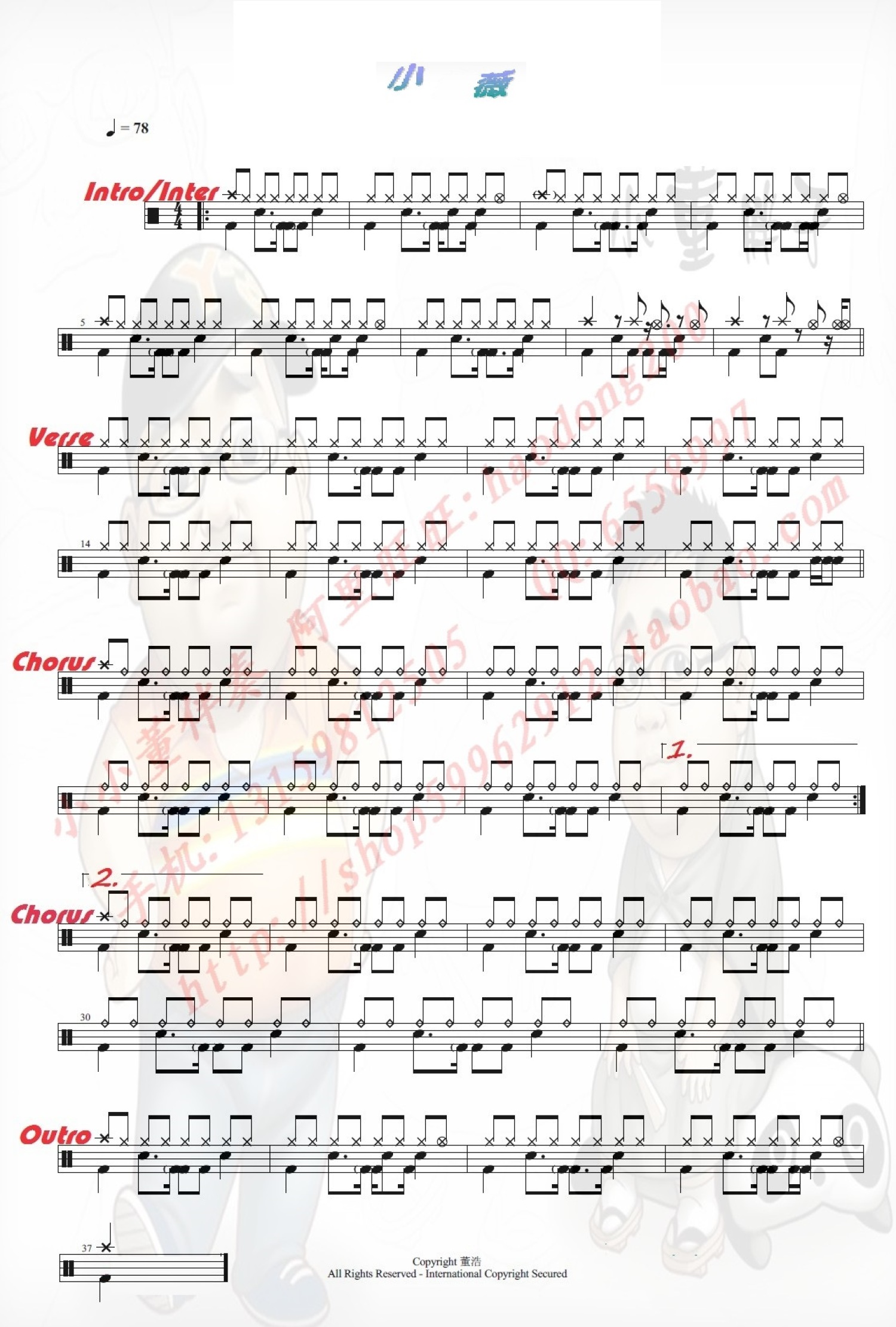 曲谱介绍: 小薇(架子鼓谱)-黄品源