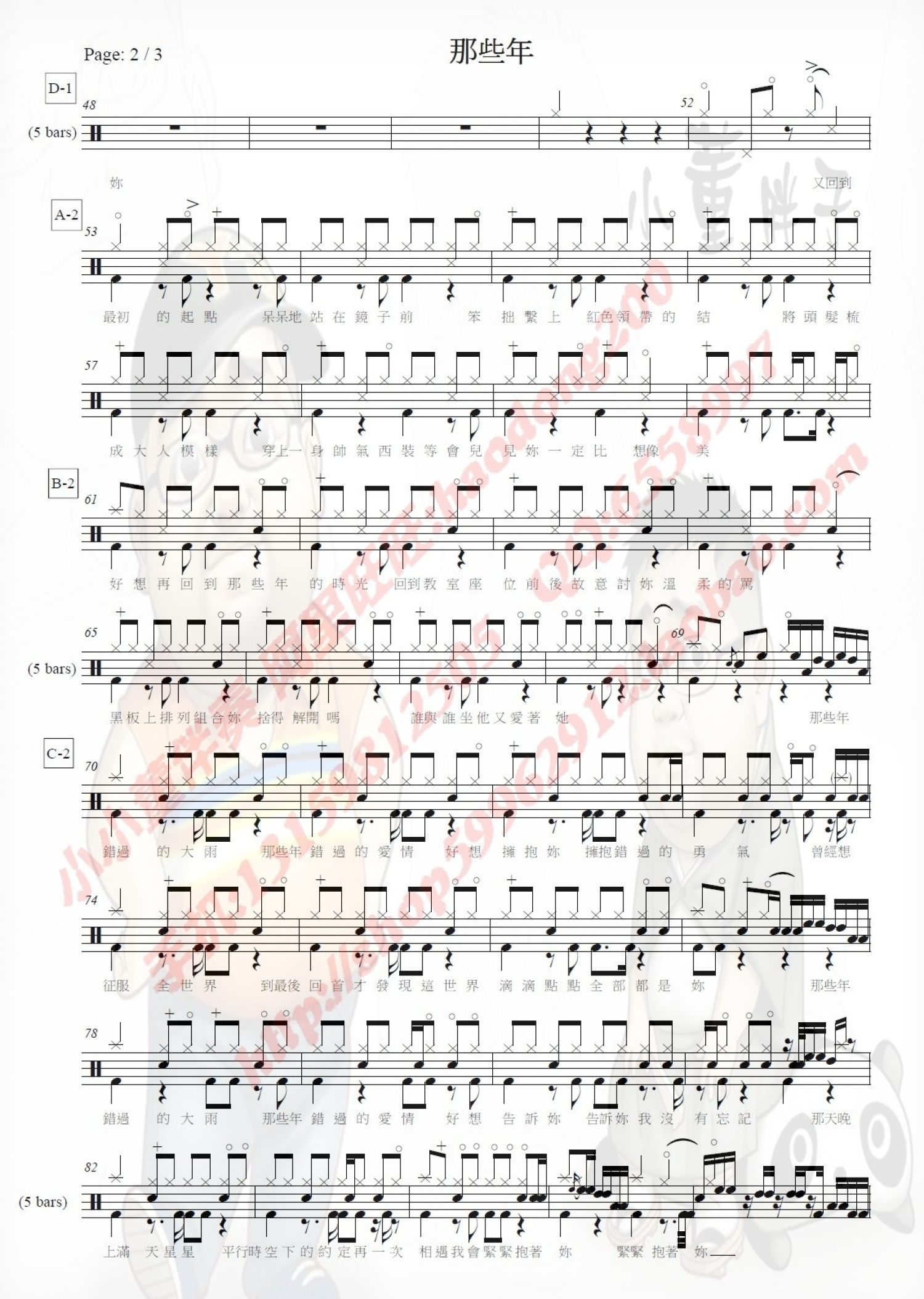 曲谱介绍: 那些年(架子鼓谱)-胡夏