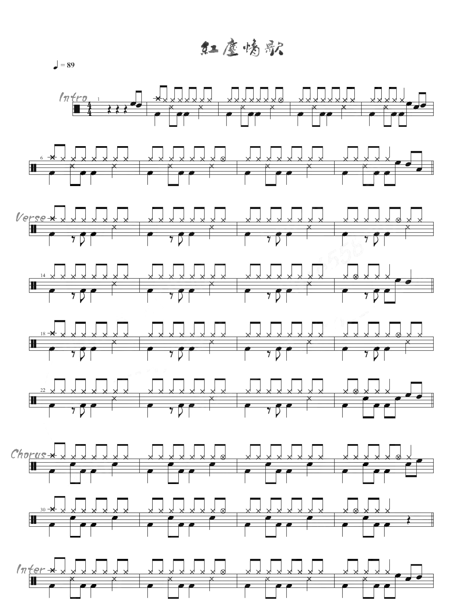 曲谱介绍: 红尘情歌(架子鼓谱)高安&黑鸭子