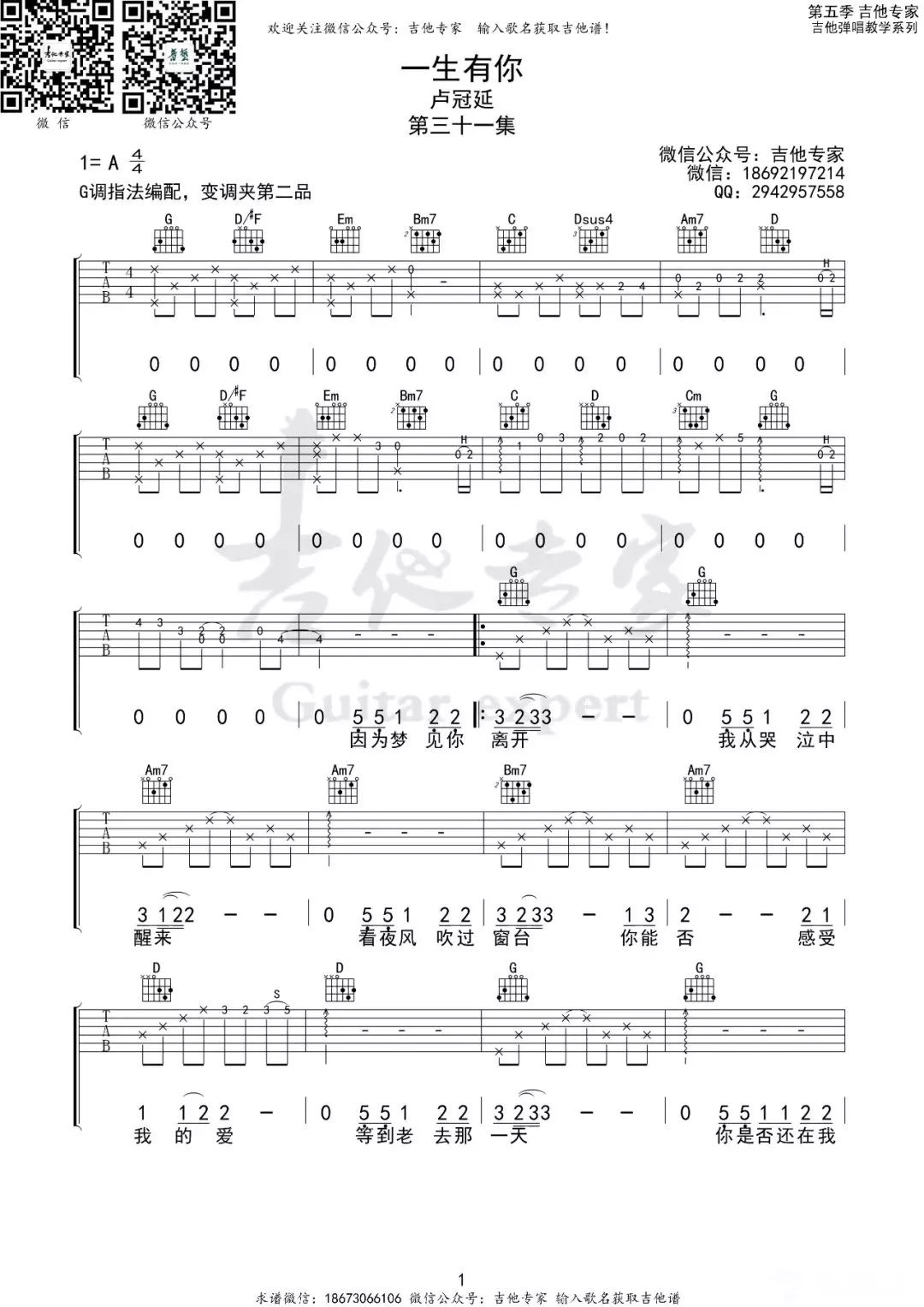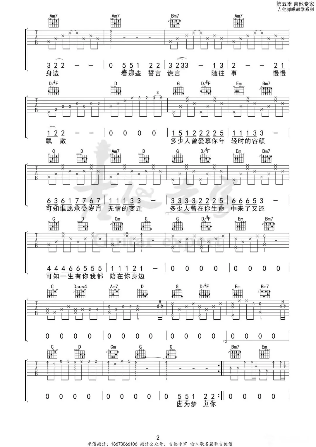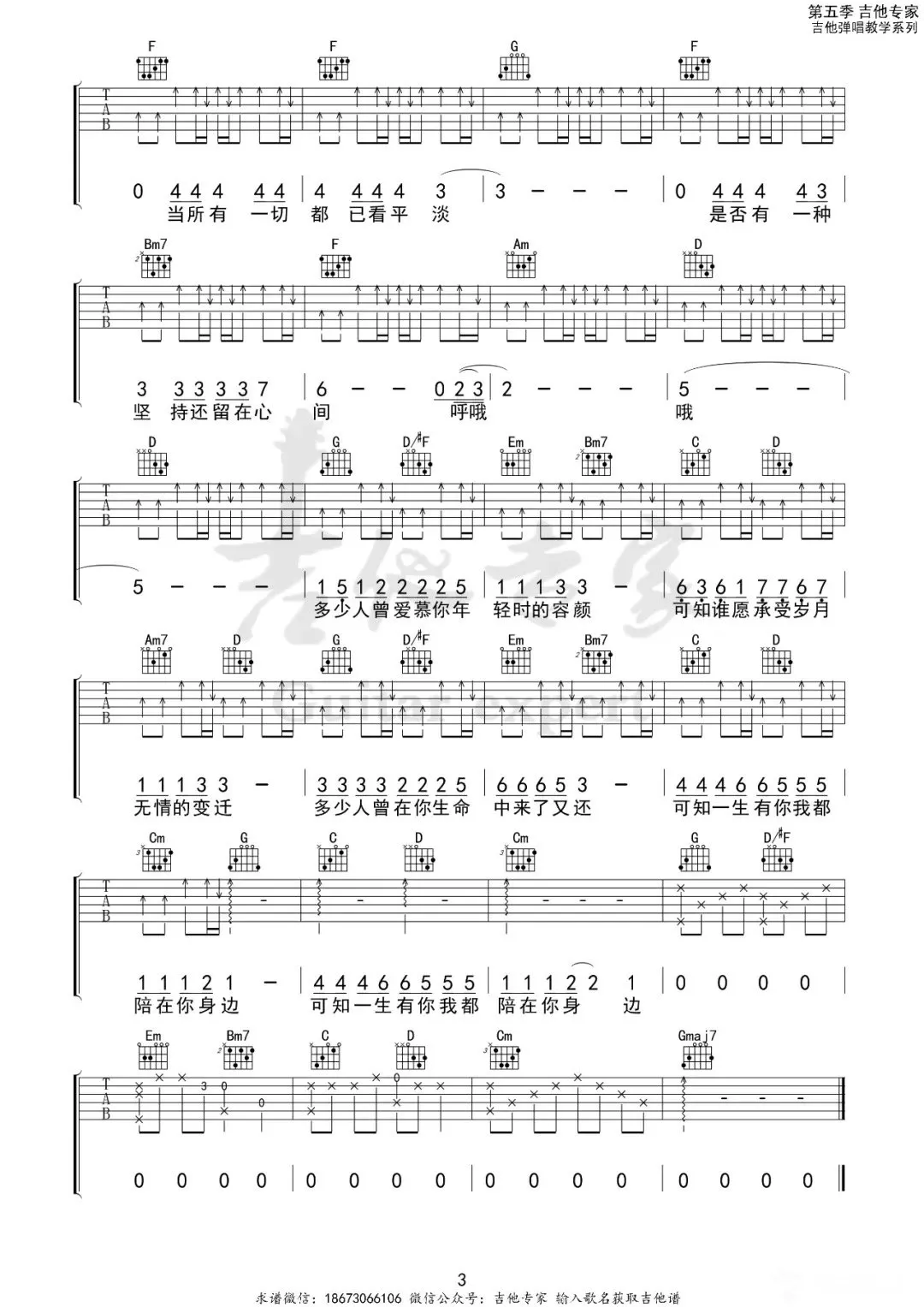 曲谱介绍: 水木年华《一生有你》吉他弹唱谱,共有3张高清图谱。