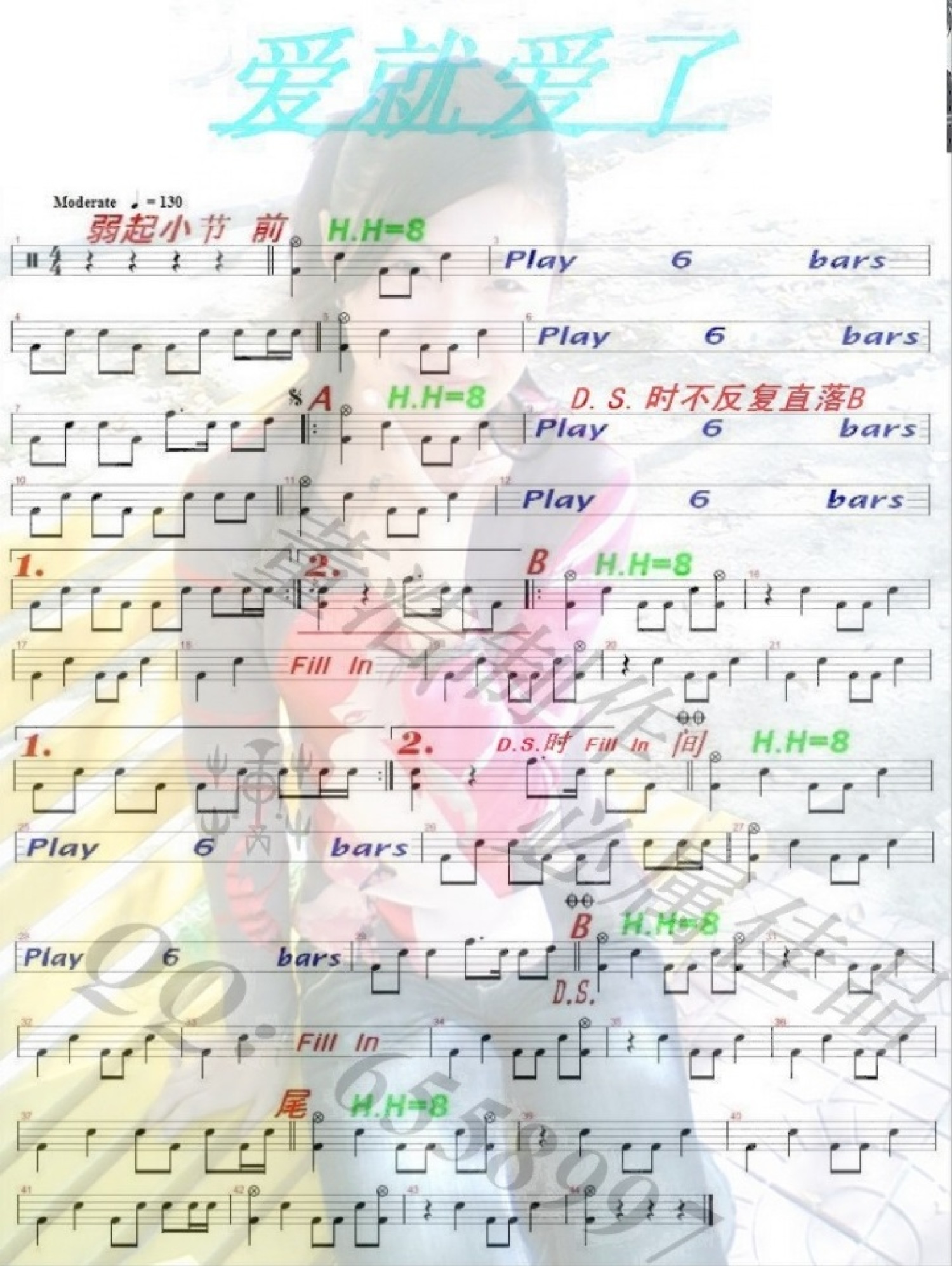 曲谱介绍: 爱就爱了(架子鼓谱)-陈琳