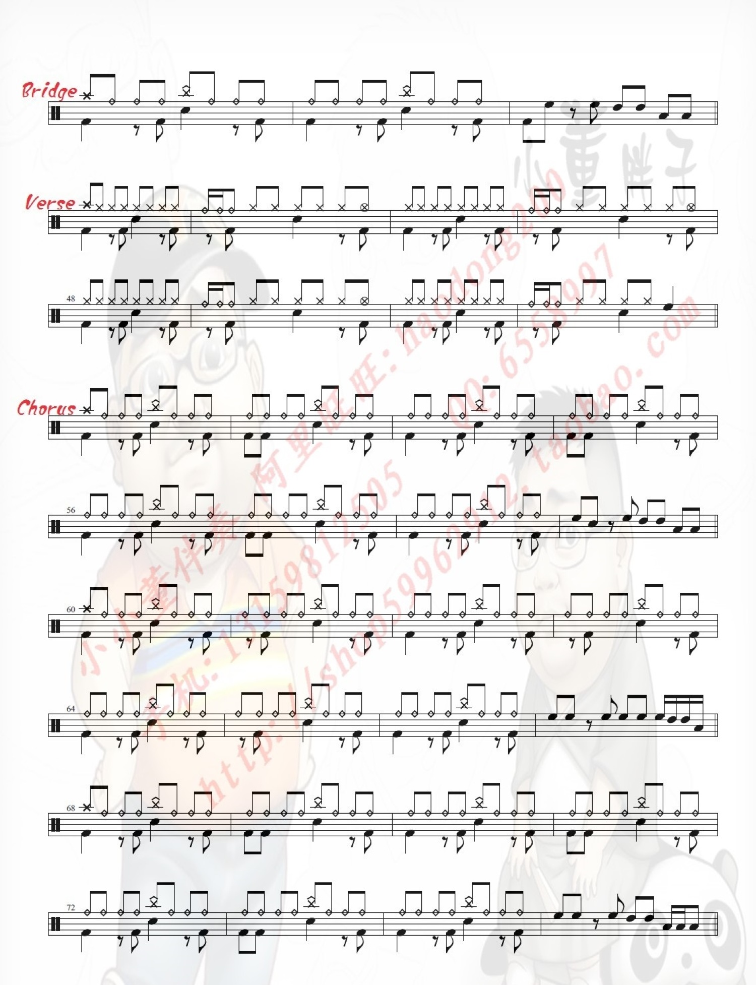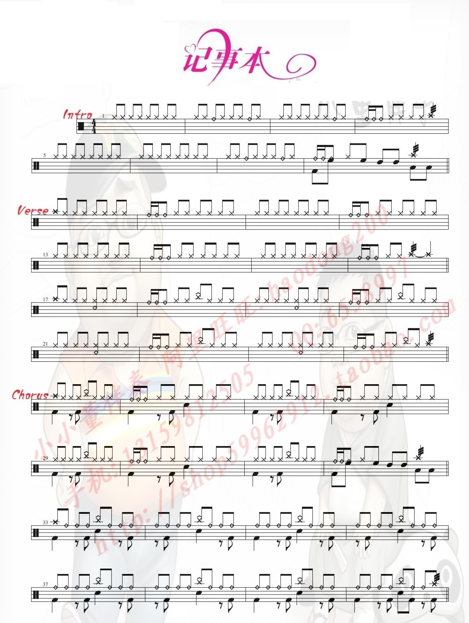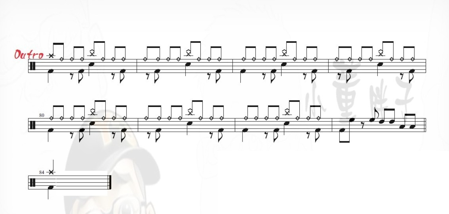 曲谱介绍: 记事本(架子鼓谱)-陈慧琳
