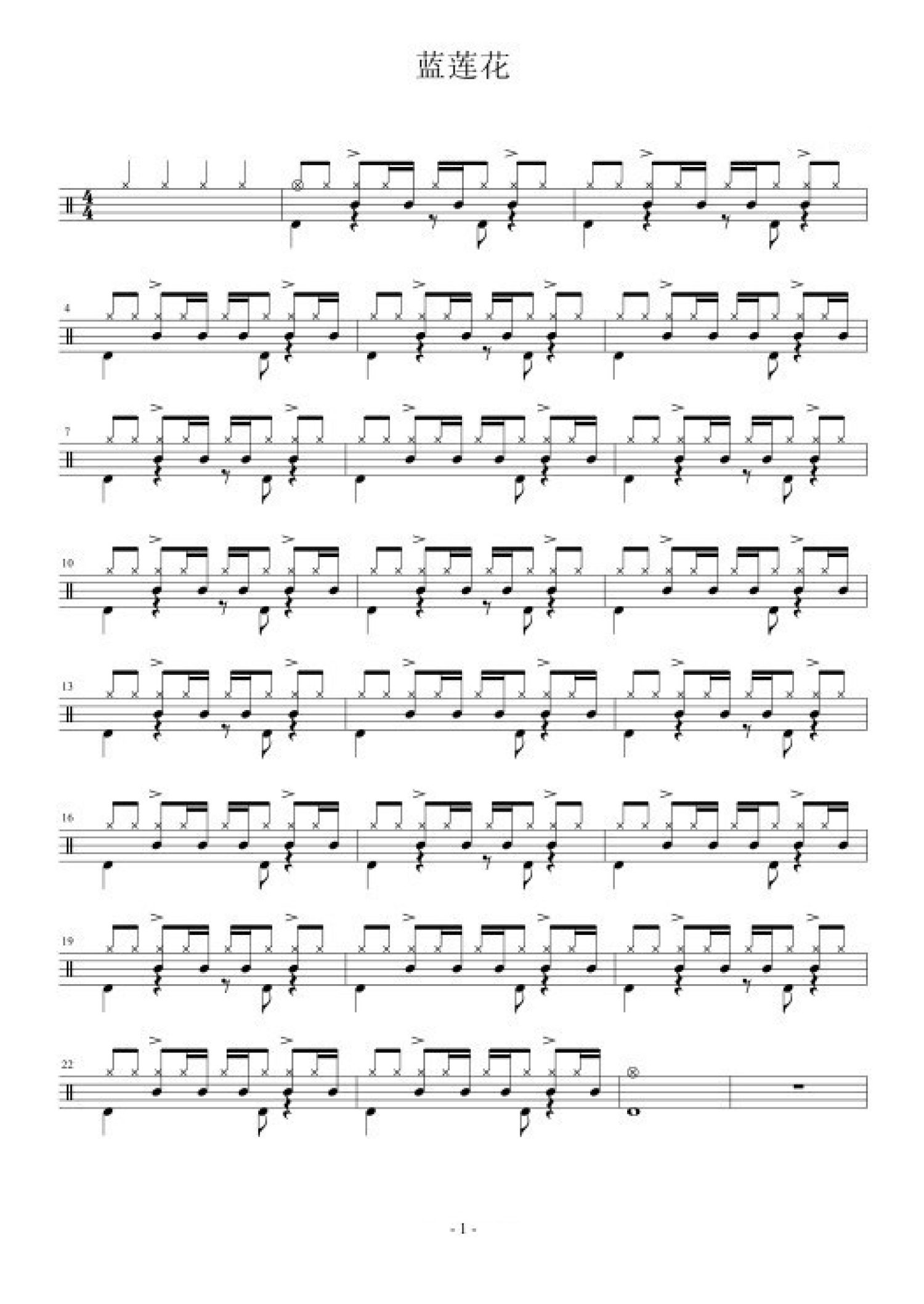 曲谱介绍: 蓝莲花(架子鼓谱)-许巍
