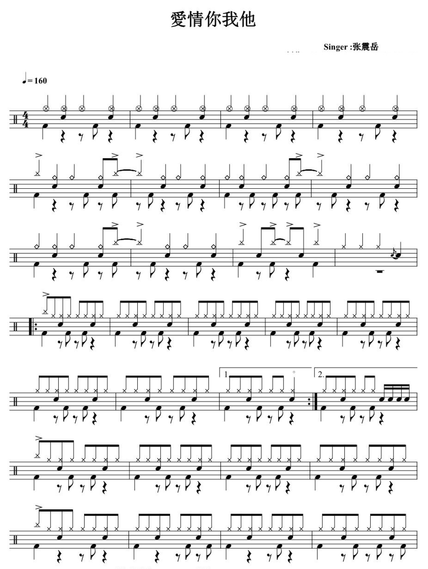 爱情你我他鼓谱 - 张震岳 - 架子鼓谱