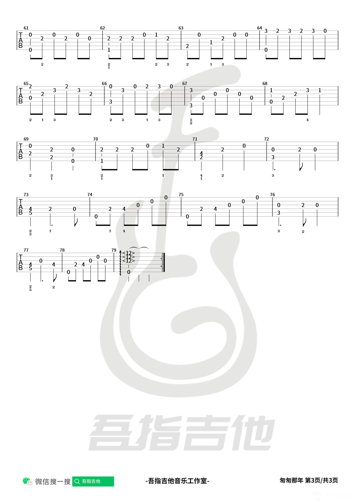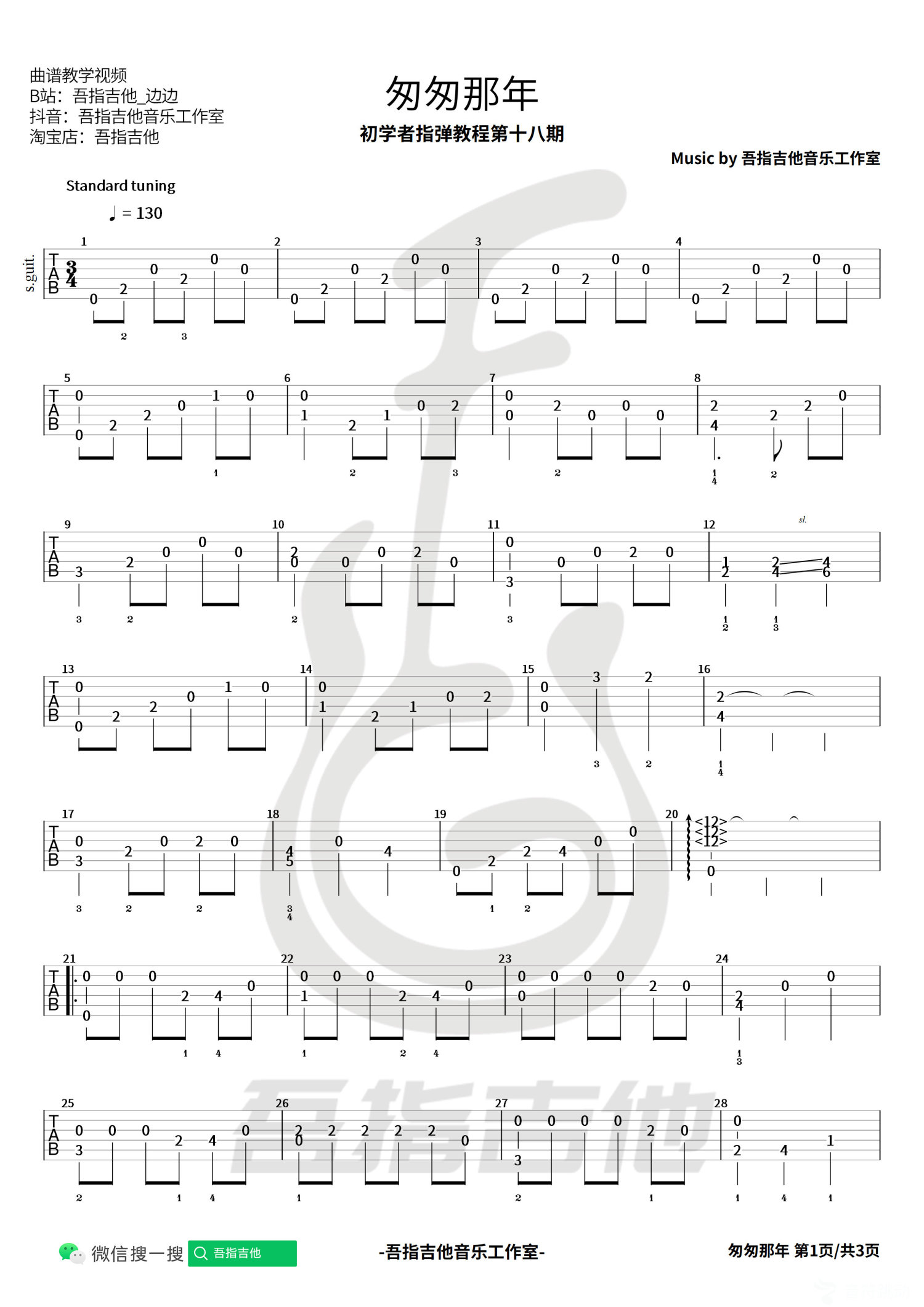 曲谱介绍: 王菲《匆匆那年》吉他独奏谱,采用C调指法编配,共有3张高清图谱。