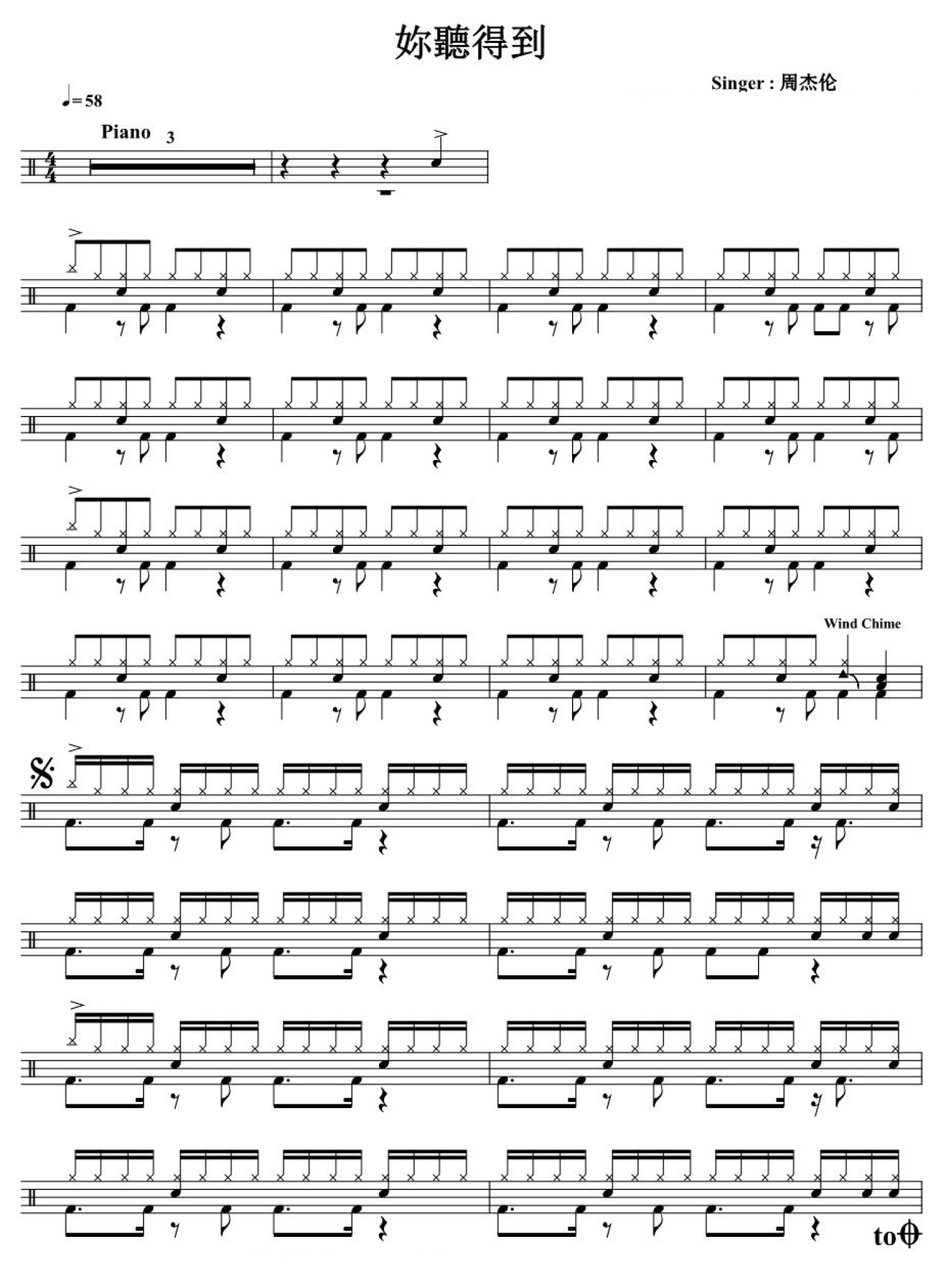 你听得到鼓谱 - 周杰伦 - 架子鼓谱