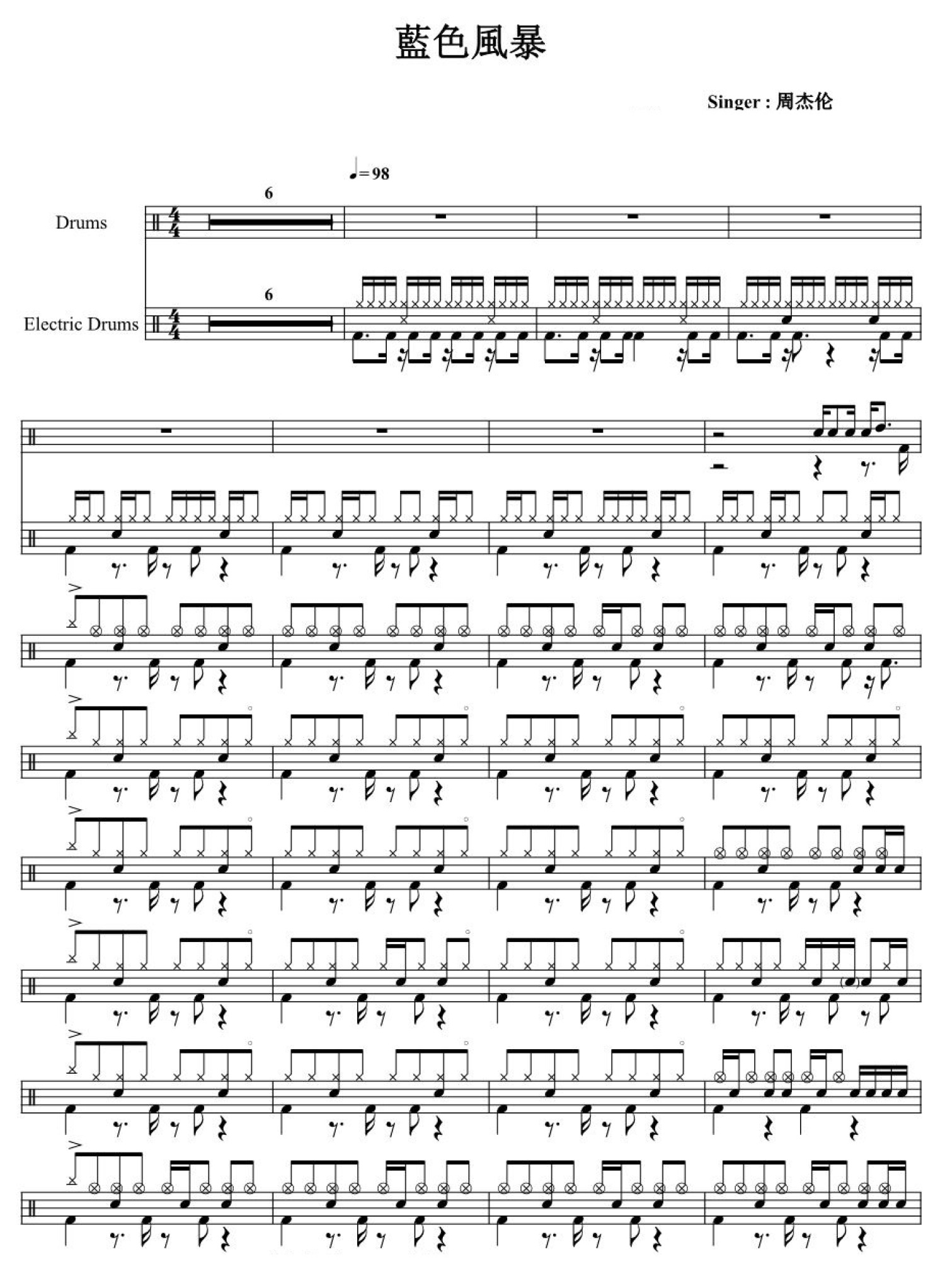 曲谱介绍: 蓝色风暴(架子鼓谱)-周杰伦