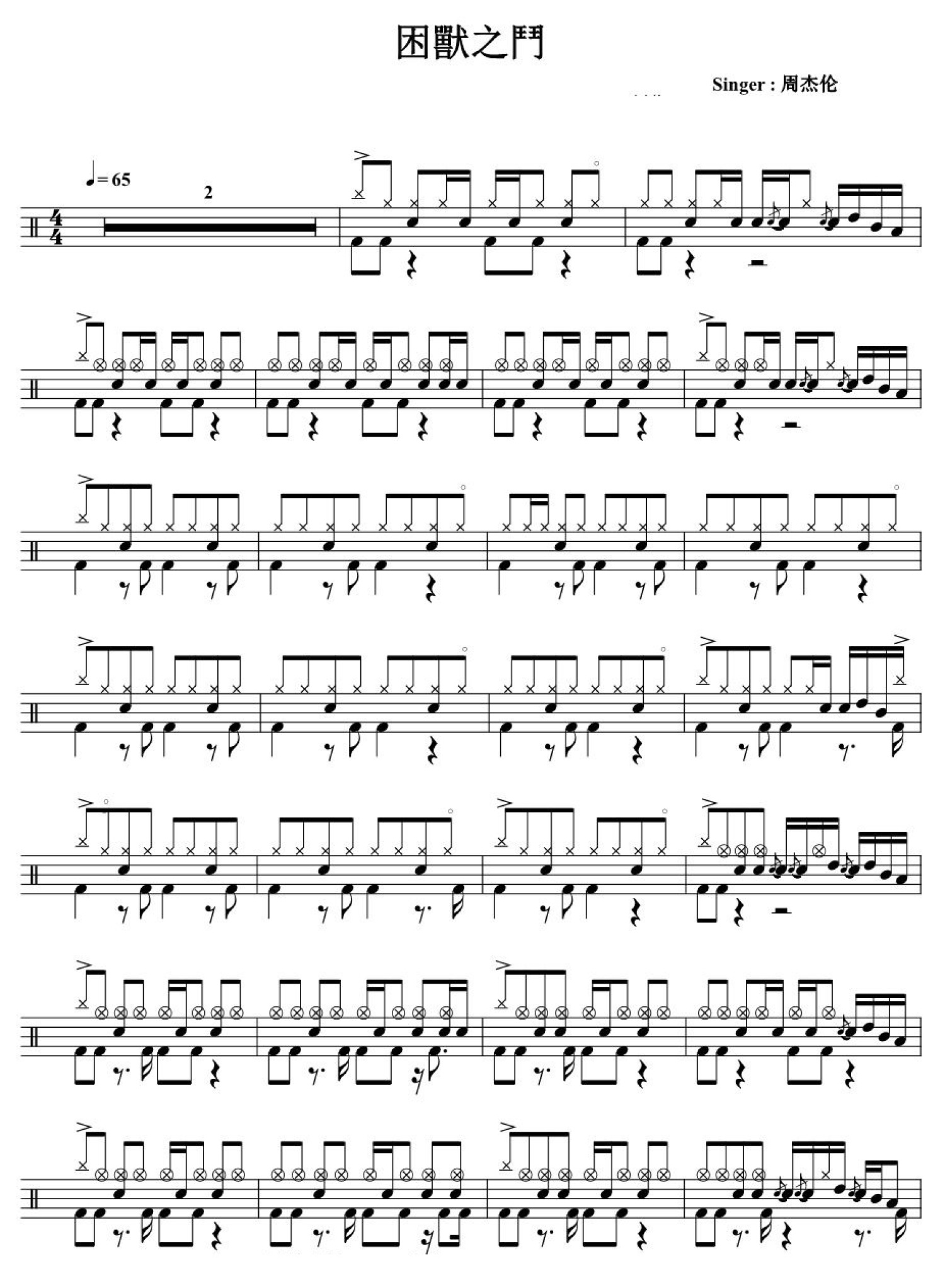 困兽之门鼓谱 - 周杰伦 - 架子鼓谱