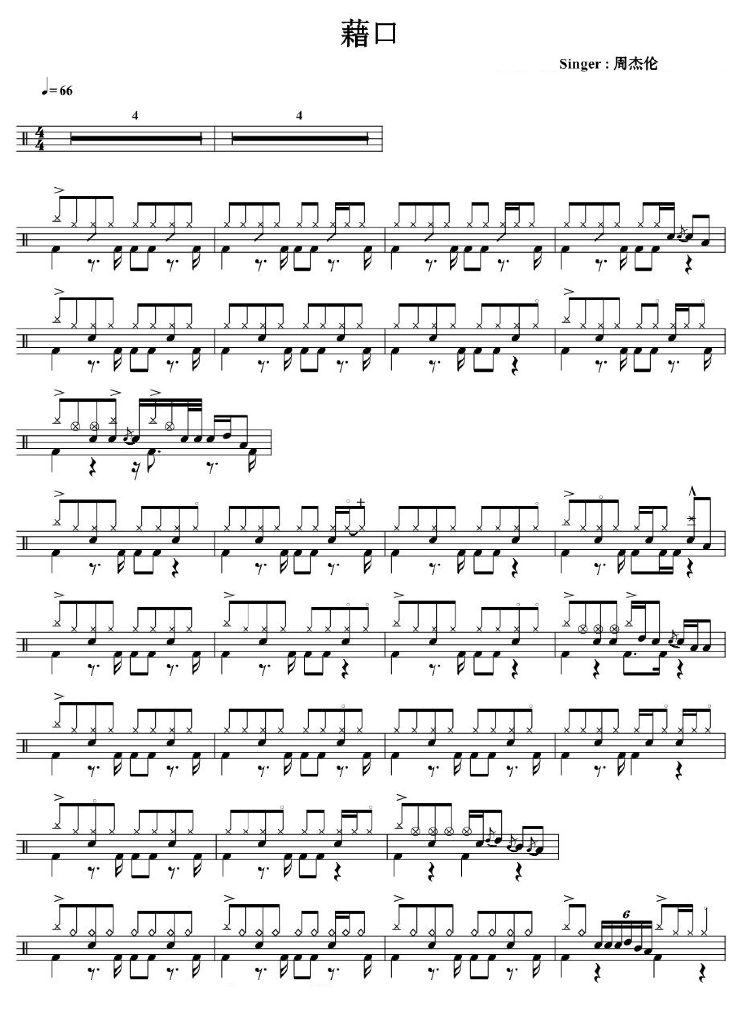 曲谱介绍: 借口(架子鼓谱)-周杰伦