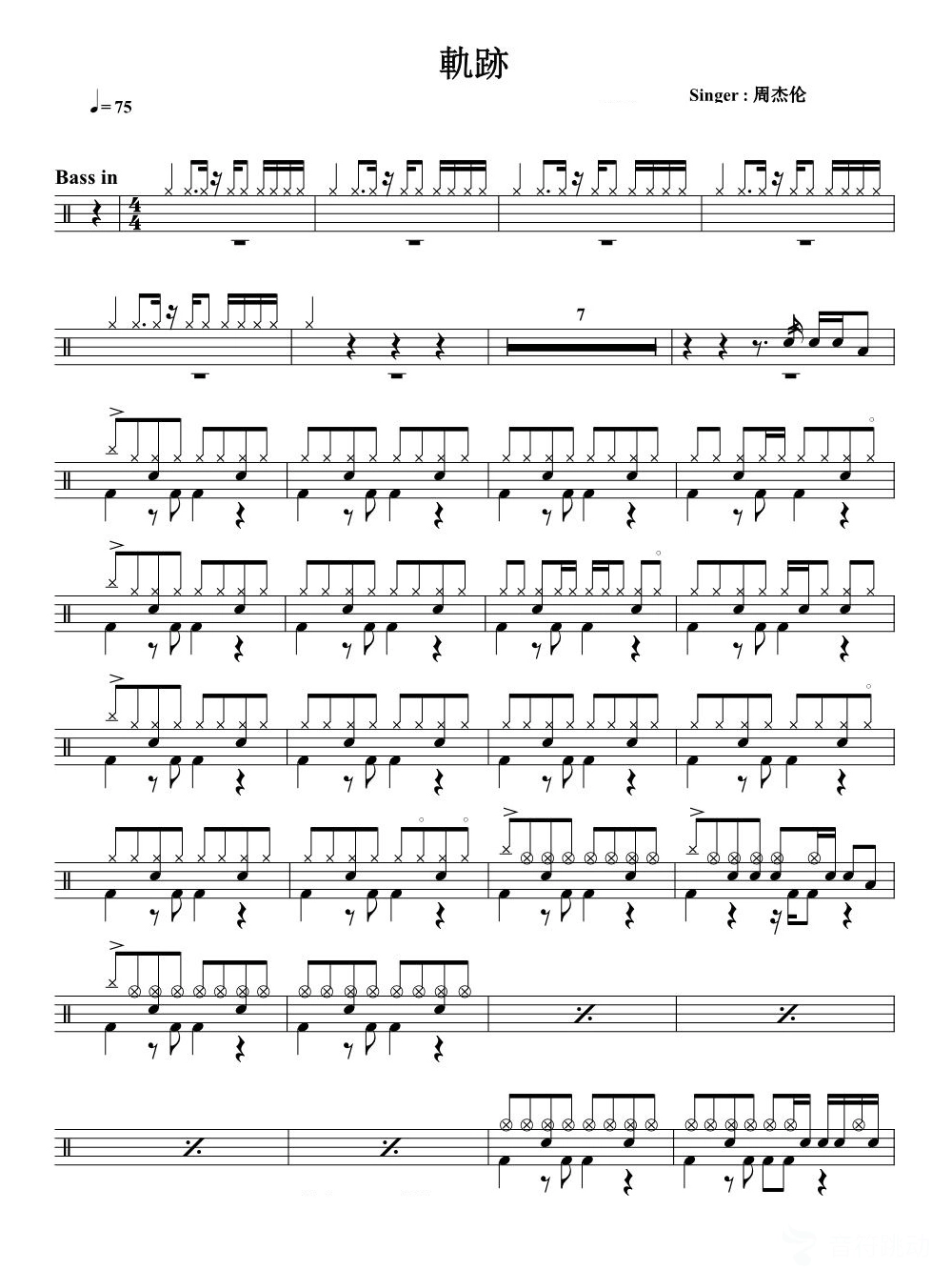 曲谱介绍: 轨迹(架子鼓谱)-周杰伦