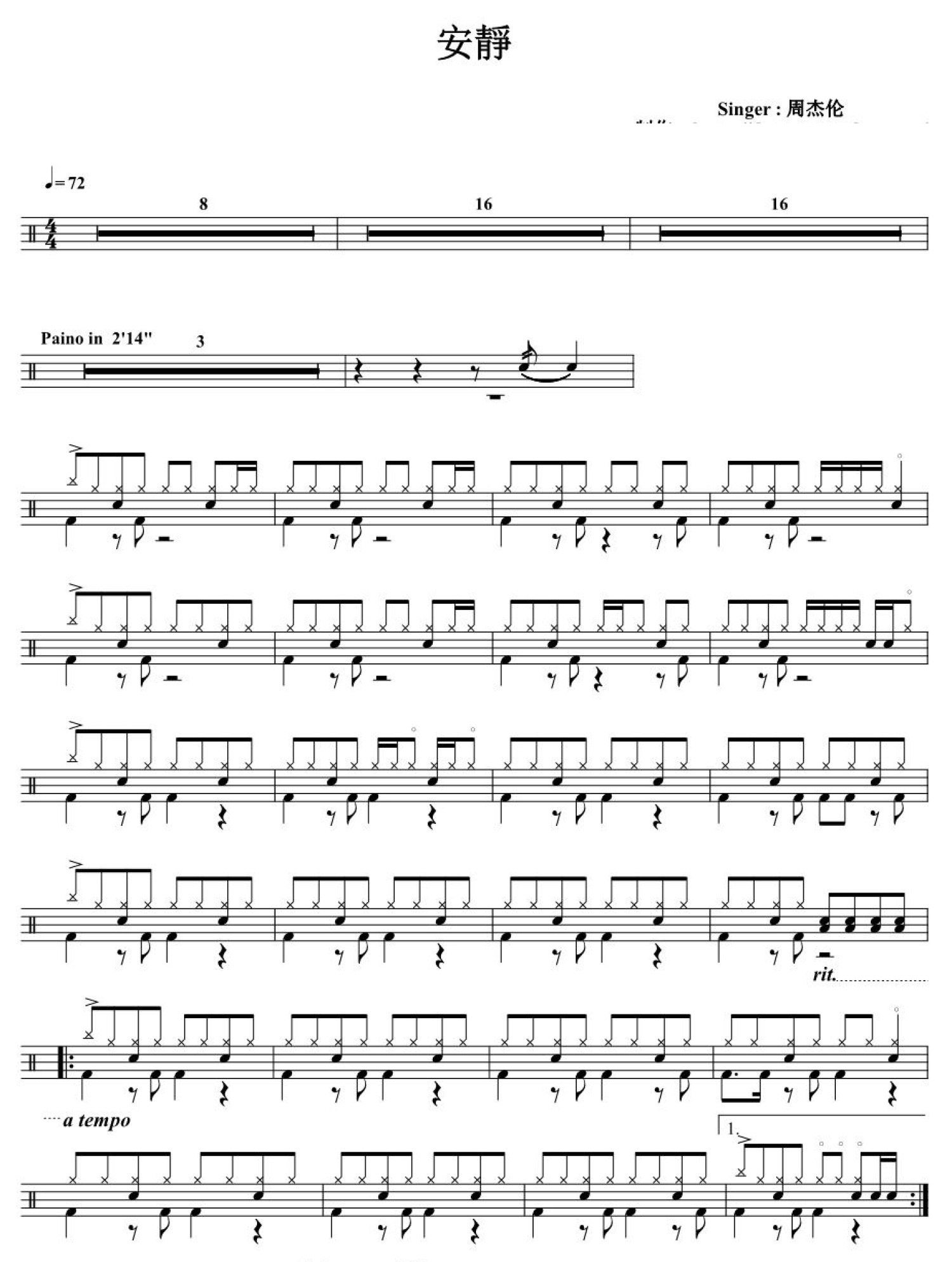 安静鼓谱 - 周杰伦 - 架子鼓谱