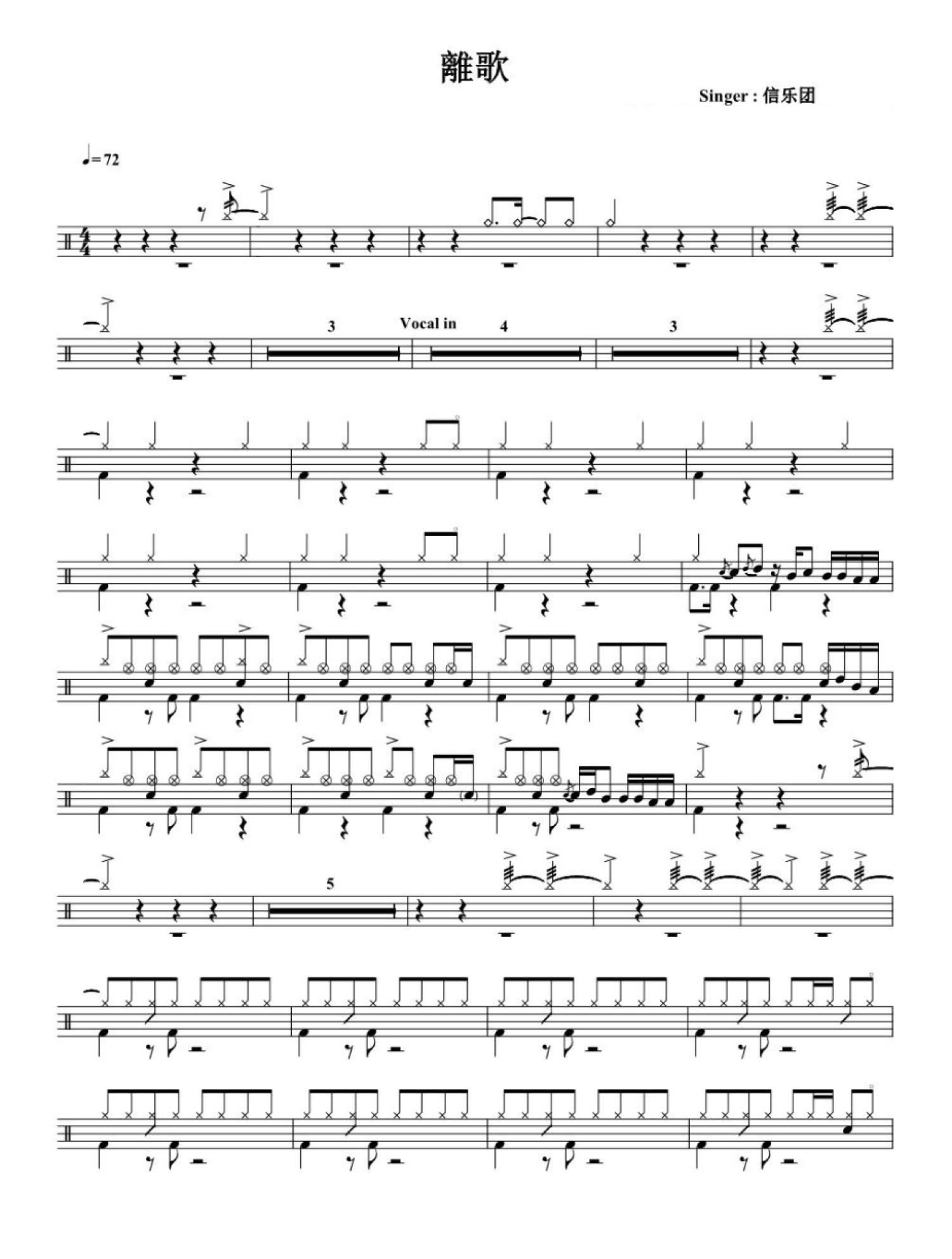 离歌鼓谱 - 信乐团 - 架子鼓谱