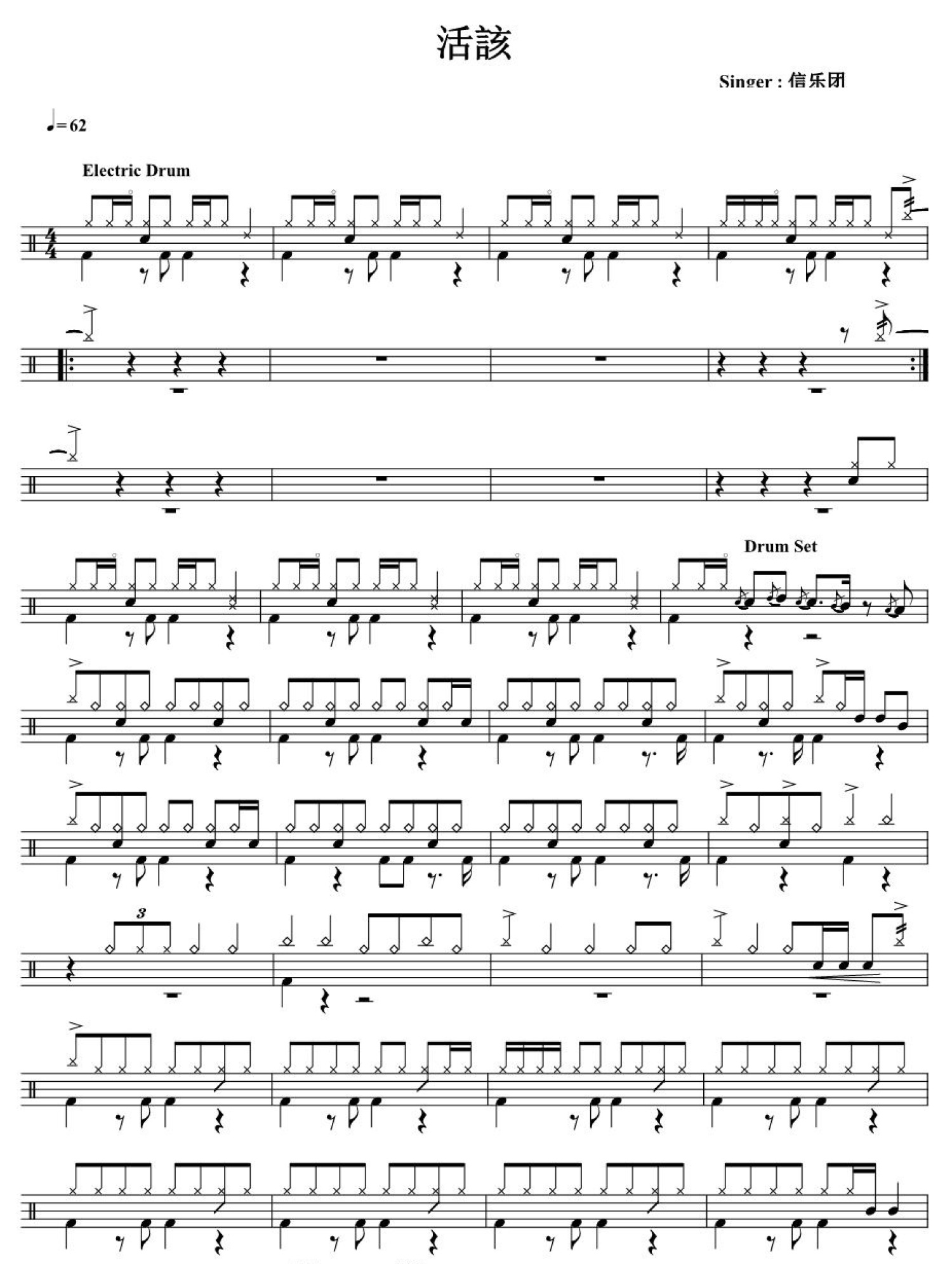 活该鼓谱 - 信乐团 - 架子鼓谱