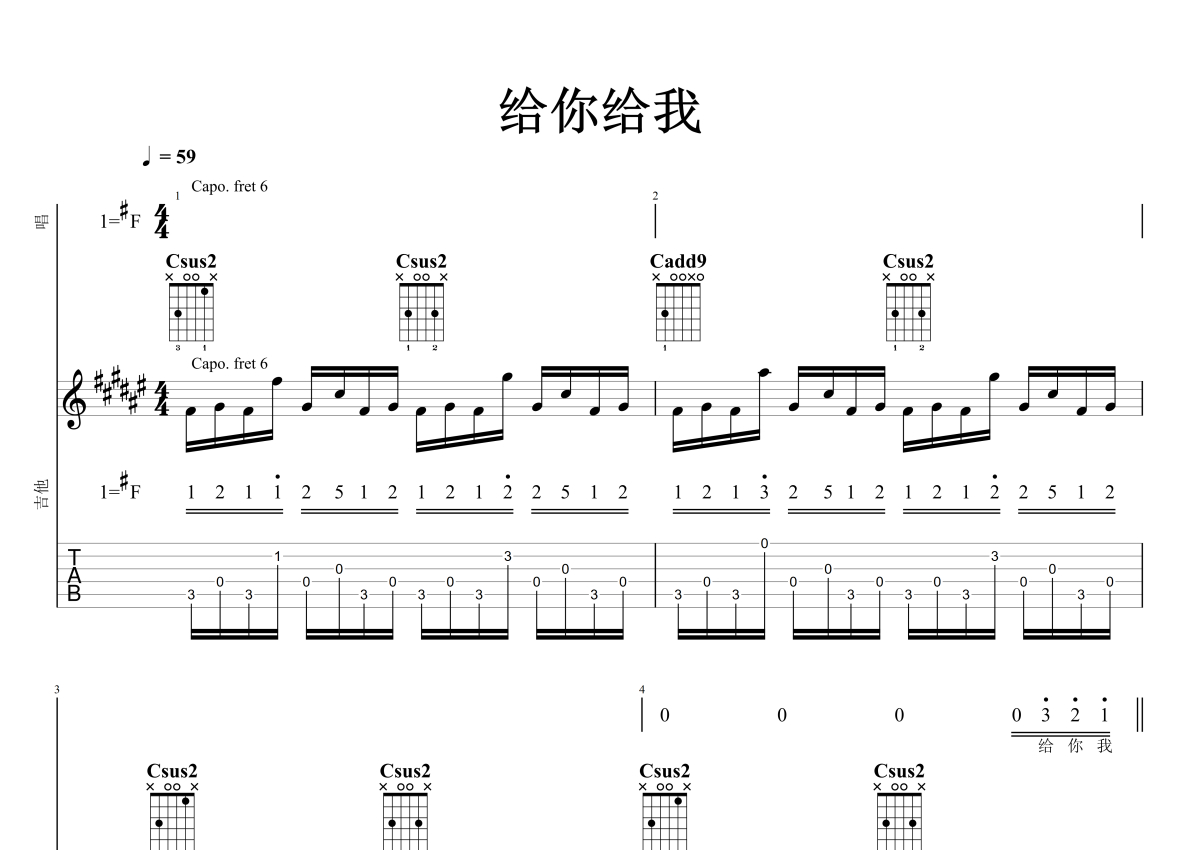 曲谱介绍: 毛不易《给你给我》吉他弹唱谱,采用C调指法编配石头音乐原版记谱,石头音乐编配出品,共有10张高清图谱。