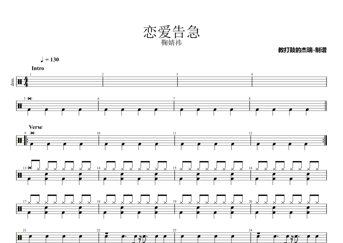• 恋爱告急鼓谱 - 鞠婧祎 - 架子鼓谱第1张