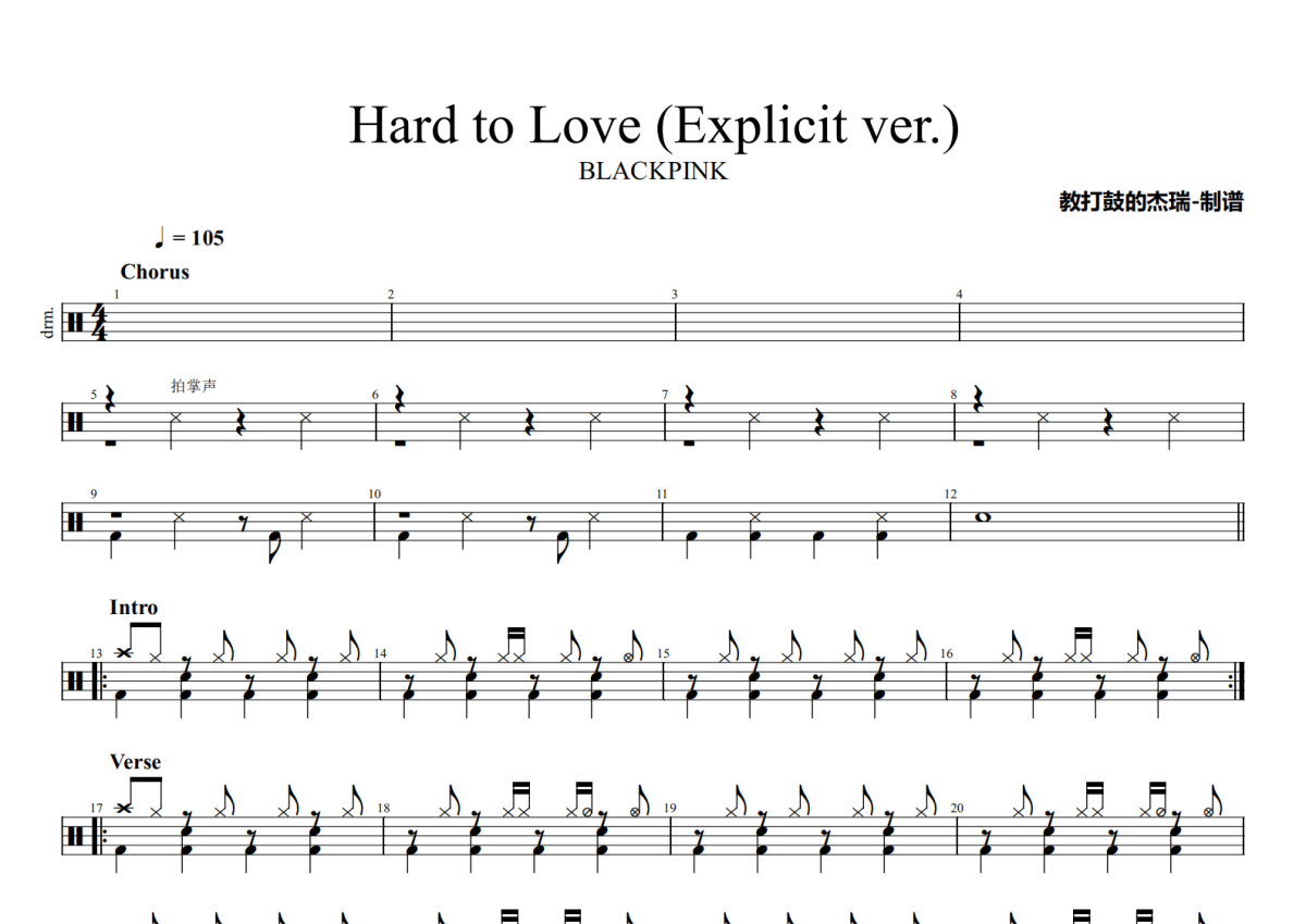 • Hard to Love (Explicit ver.)鼓谱 - BLACKPINK - 架子鼓谱第1张
