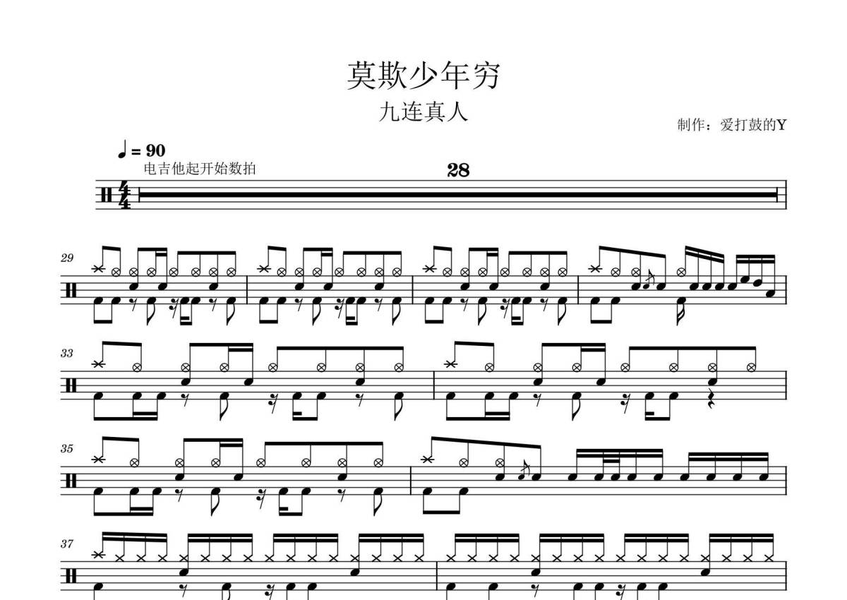 • 莫欺少年穷鼓谱 - 九连真人 - 架子鼓谱第1张