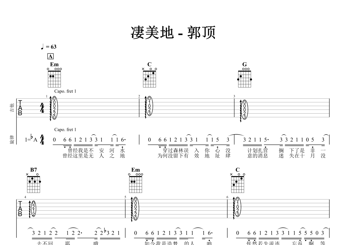 凄美地吉他谱 - 郭顶 - G调吉他弹唱谱 - 石头音乐原版记谱