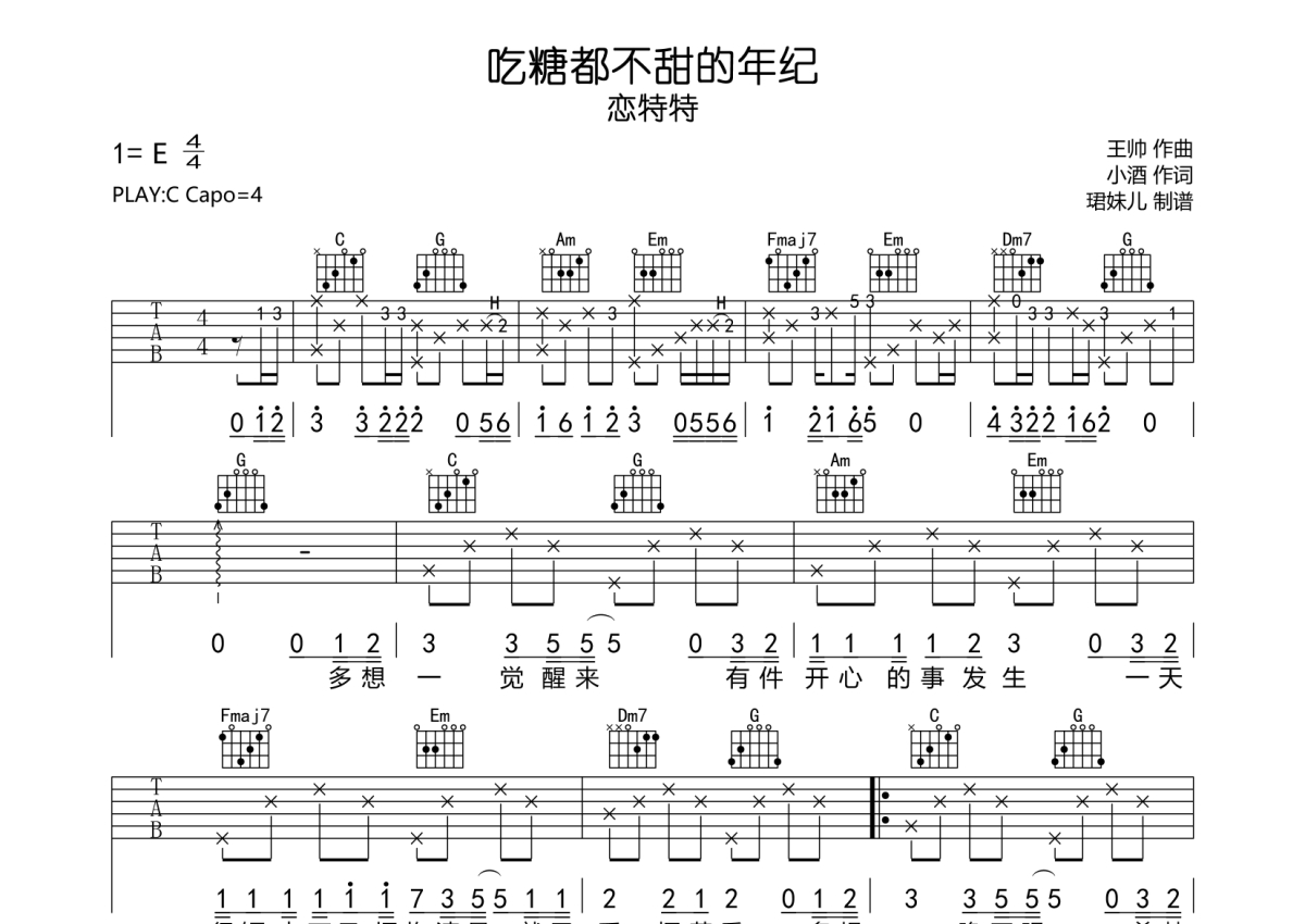 • 吃糖都不甜的年纪吉他谱 - 恋特特 - C调吉他弹唱谱第1张