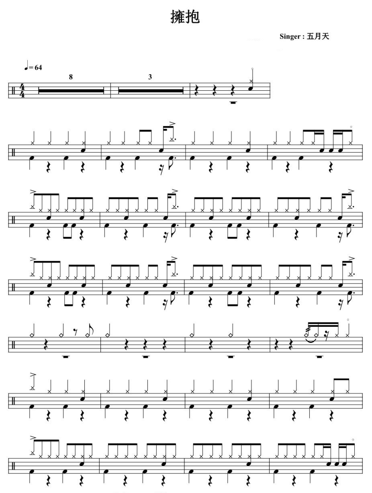 拥抱鼓谱 - 五月天 - 架子鼓谱