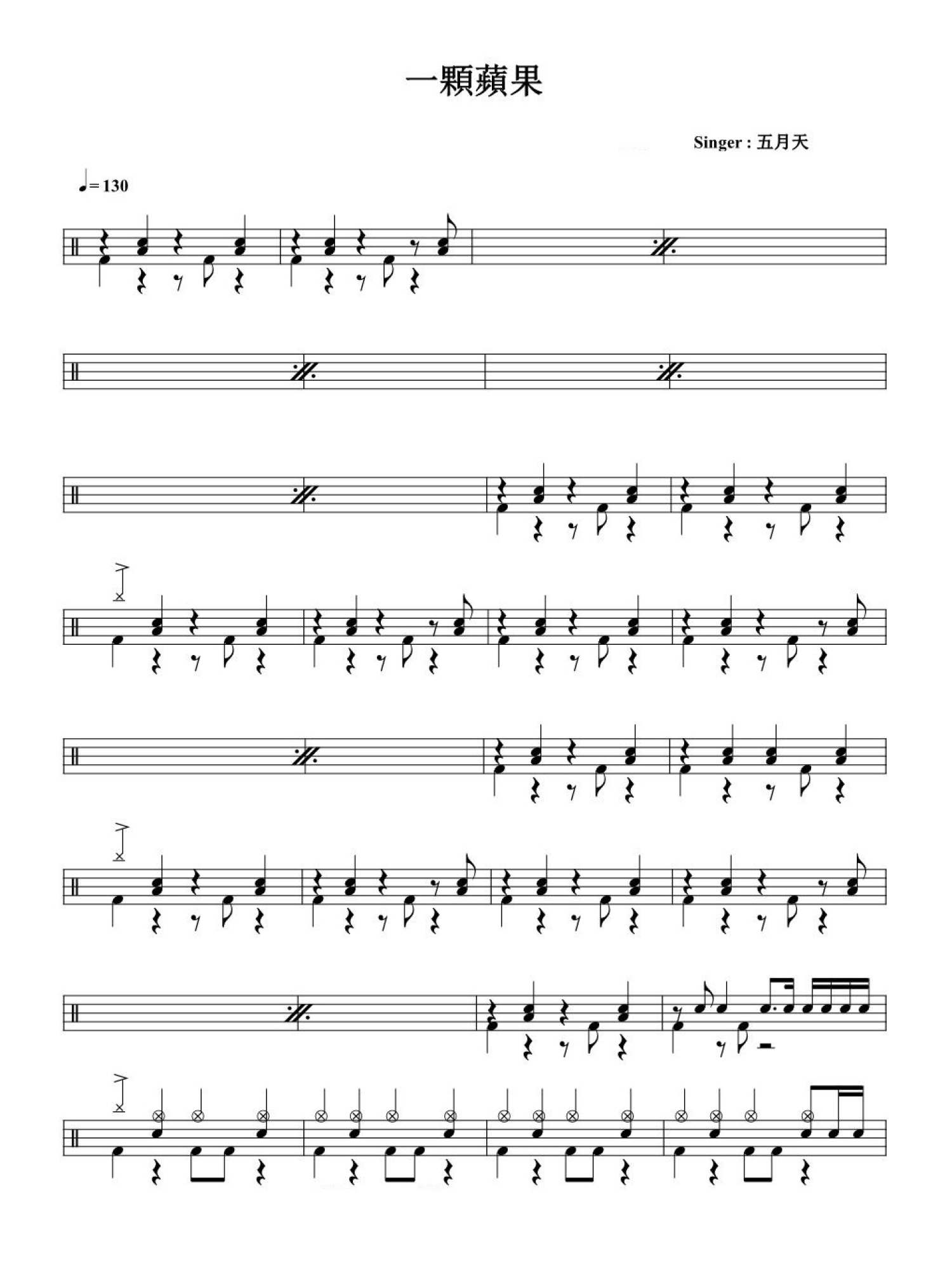一颗苹果鼓谱 - 五月天 - 架子鼓谱