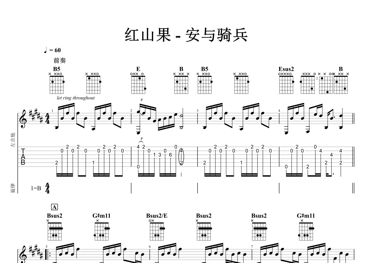 红山果吉他谱 - 安与骑兵 - B调吉他弹唱谱 - 石头音乐原版记谱