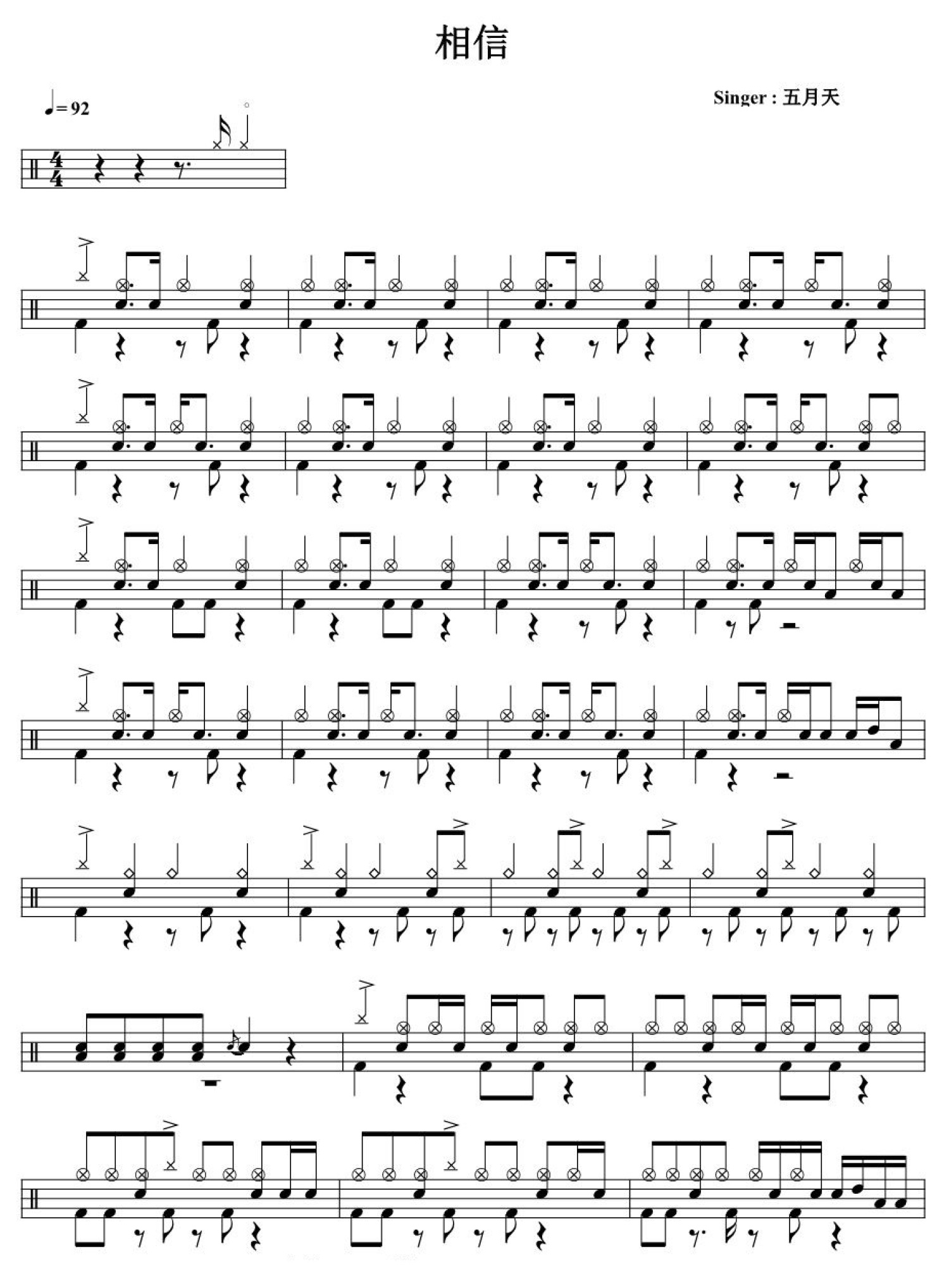相信鼓谱 - 五月天 - 架子鼓谱