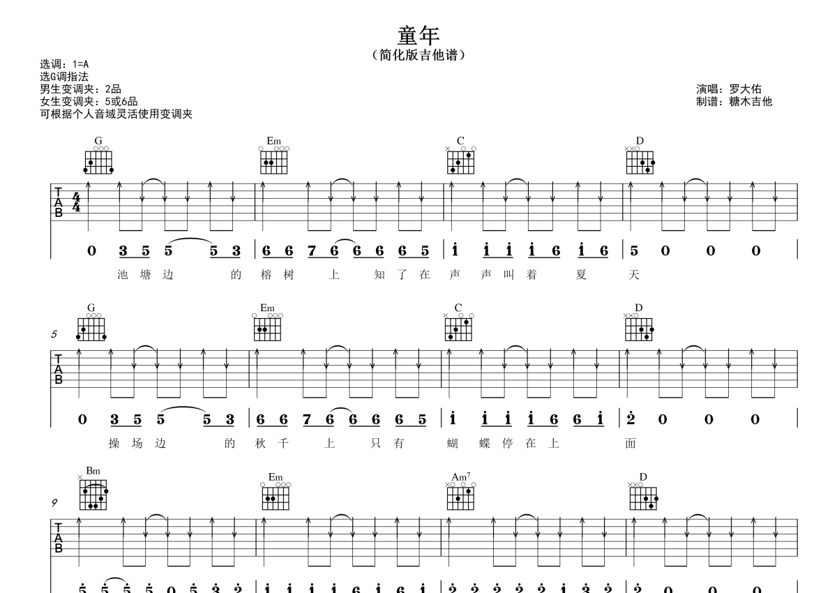 • 童年吉他谱 - 罗大佑 - G调吉他弹唱谱第1张