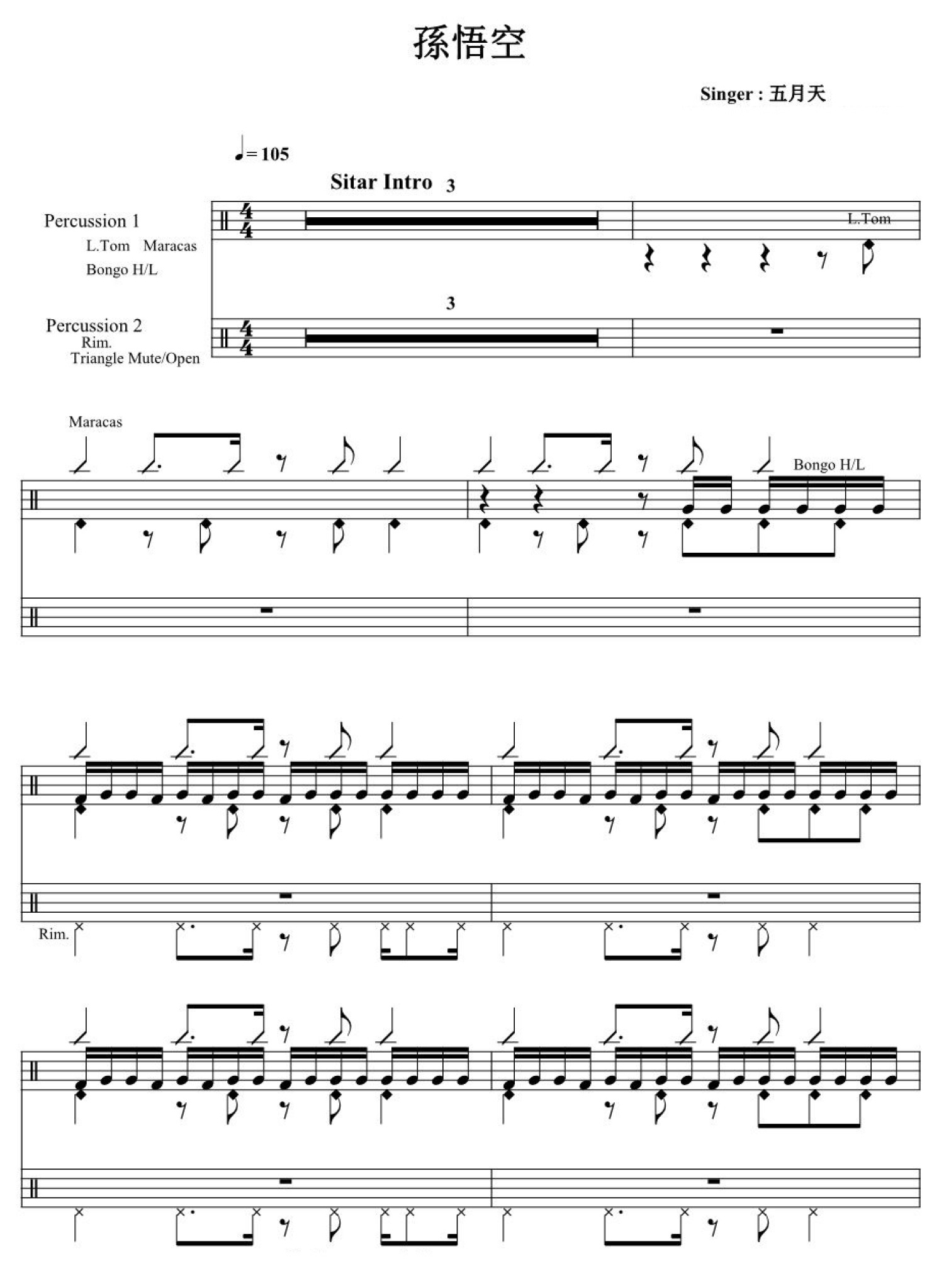 曲谱介绍: 孙悟空(架子鼓谱)-五月天