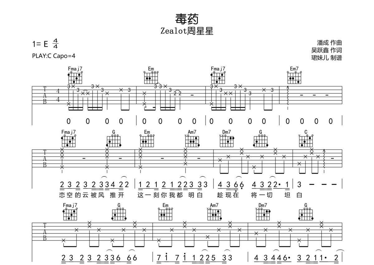 • 毒药吉他谱 - Zealot周星星 - C调吉他弹唱谱第1张