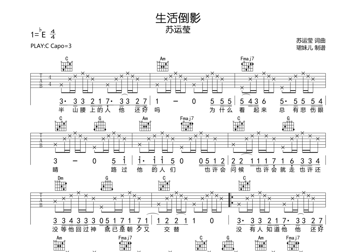 • 生活倒影吉他谱 - 苏运莹 - C调吉他弹唱谱第1张