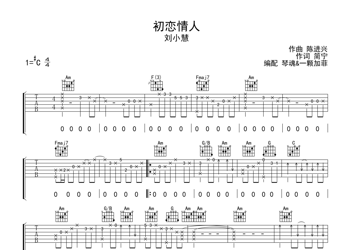 • 初恋情人吉他谱 - 刘小慧 - C调吉他弹唱谱第1张