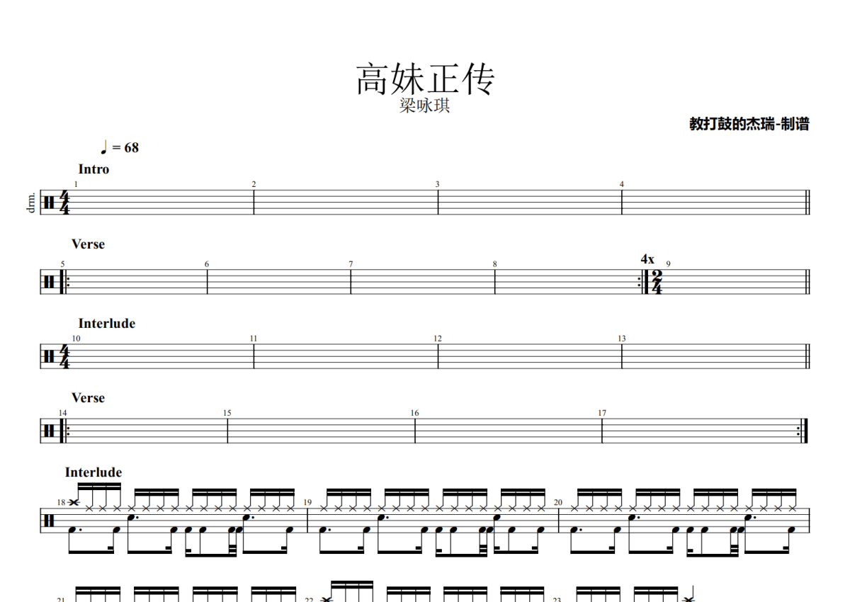 高妹正传鼓谱 - 梁咏琪 - 架子鼓谱
