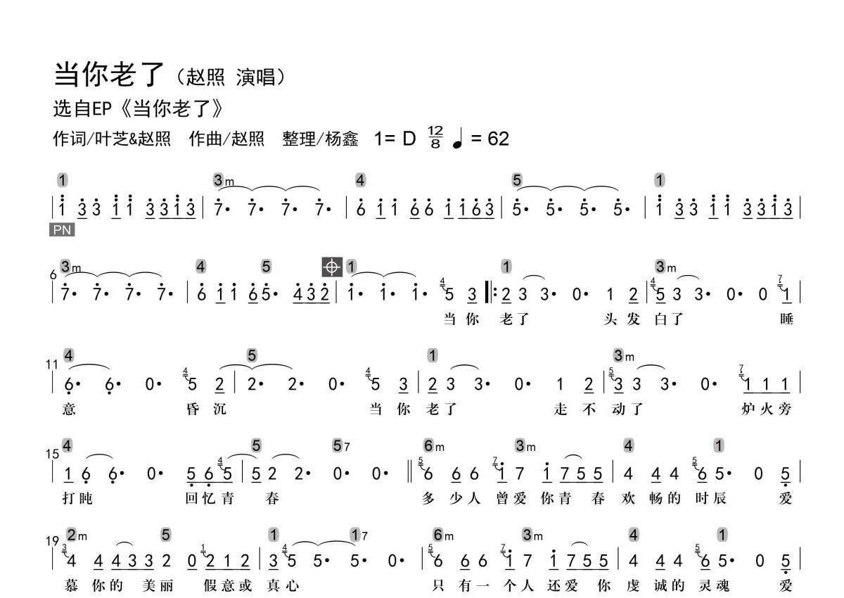 • 当你老了简谱 - 赵照 - 级数和弦标记第1张