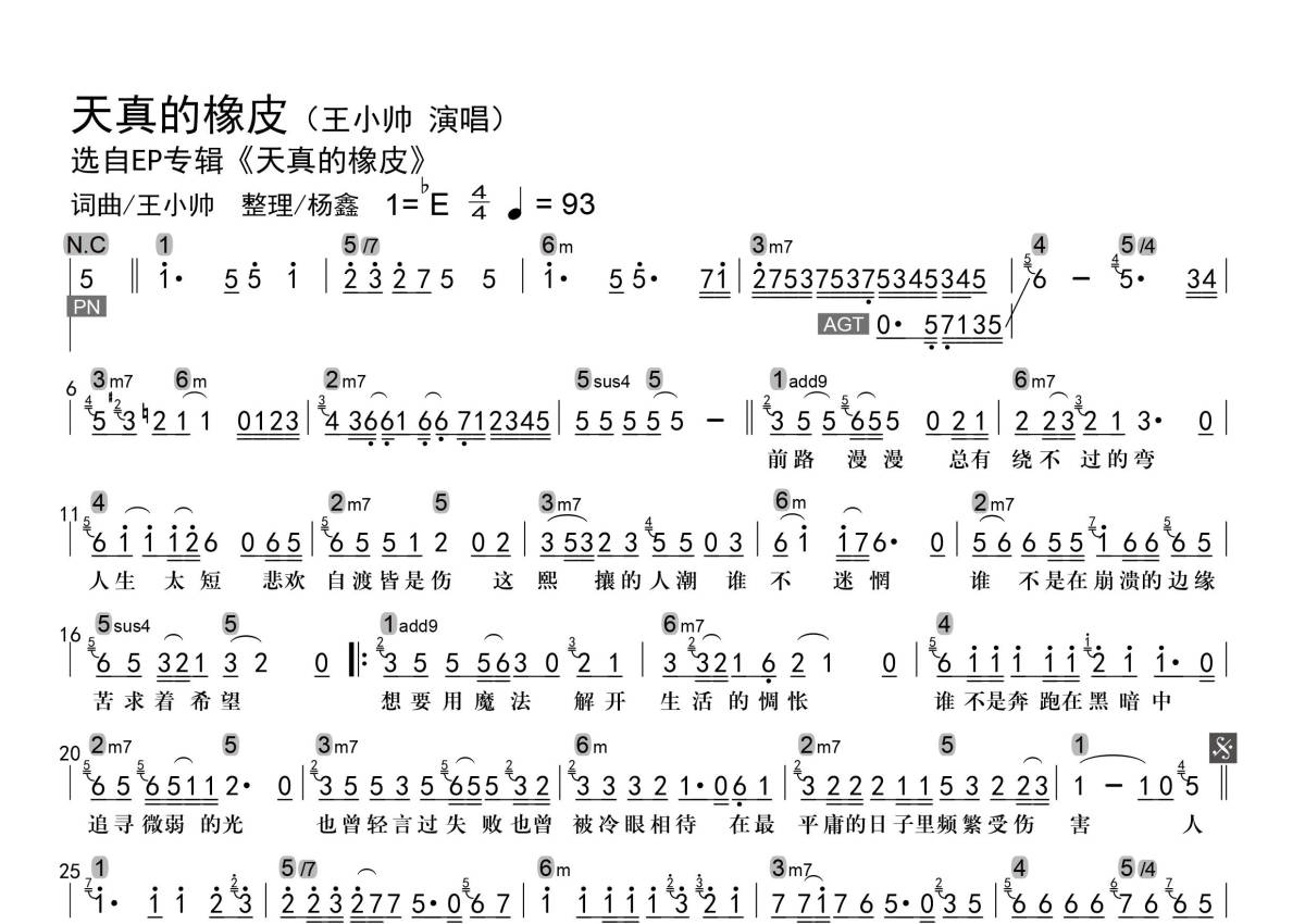 • 天真的橡皮简谱 - 王小帅 - 级数和弦标记第1张