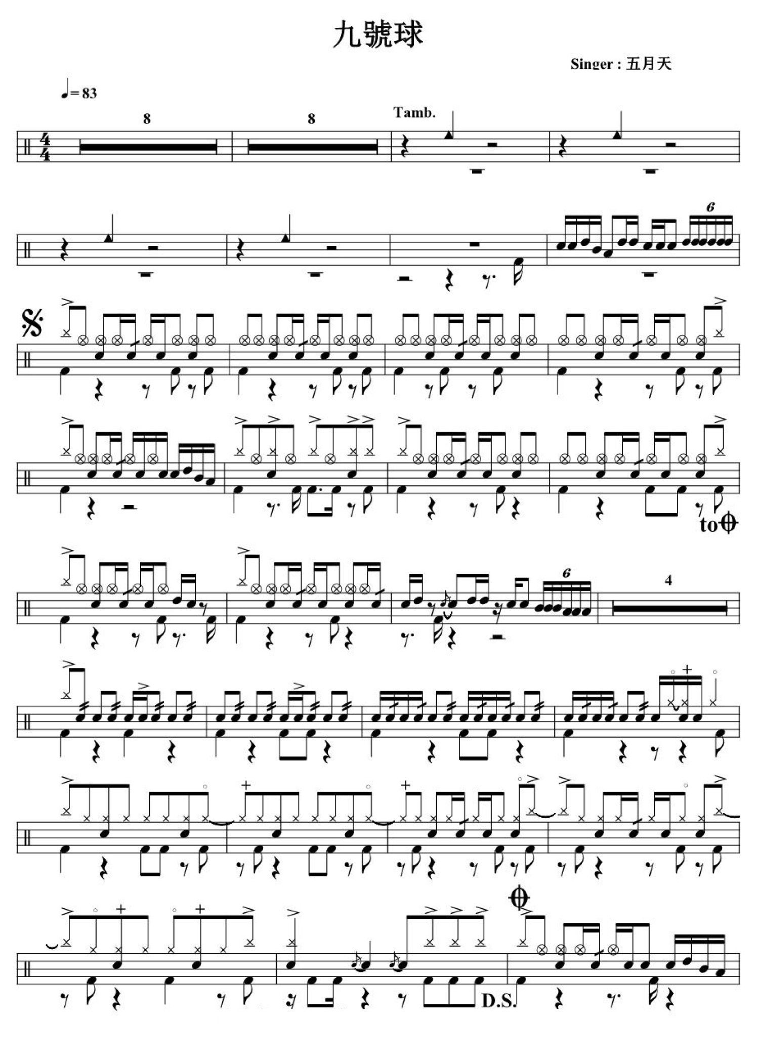 曲谱介绍: 九号球(架子鼓谱)-五月天