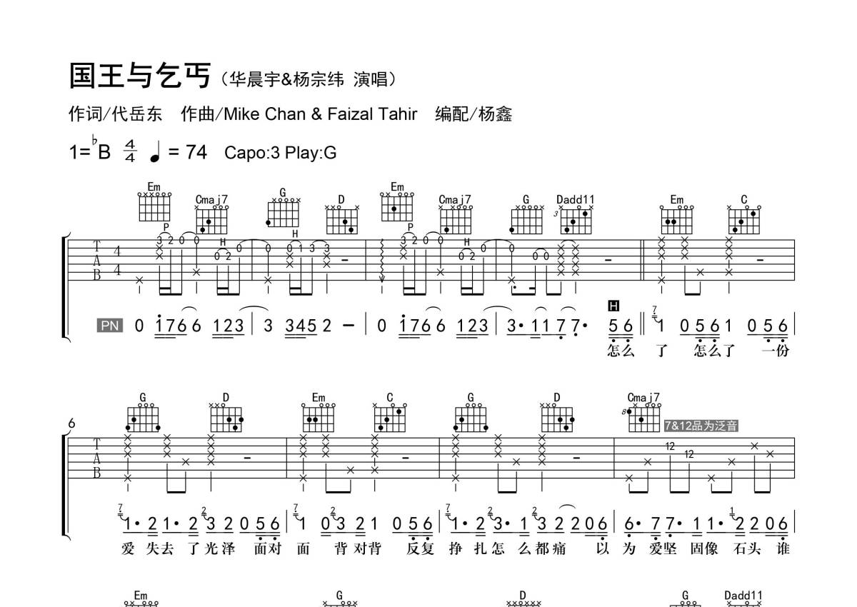 • 国王与乞丐吉他谱 - 杨宗纬/华晨宇 - G调吉他弹唱谱 - 精编弹唱第1张