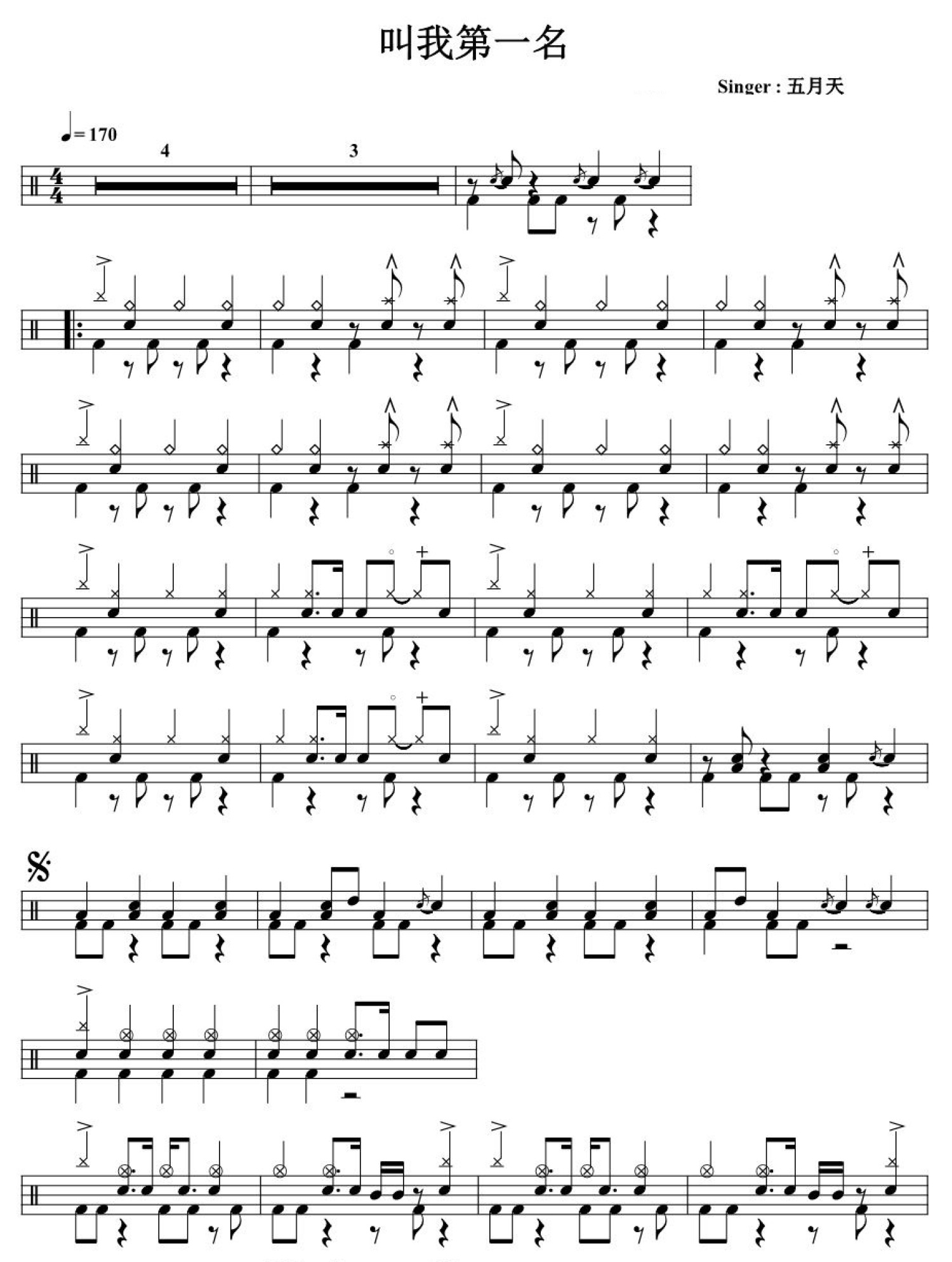 曲谱介绍: 叫我第一名(架子鼓谱)-五月天