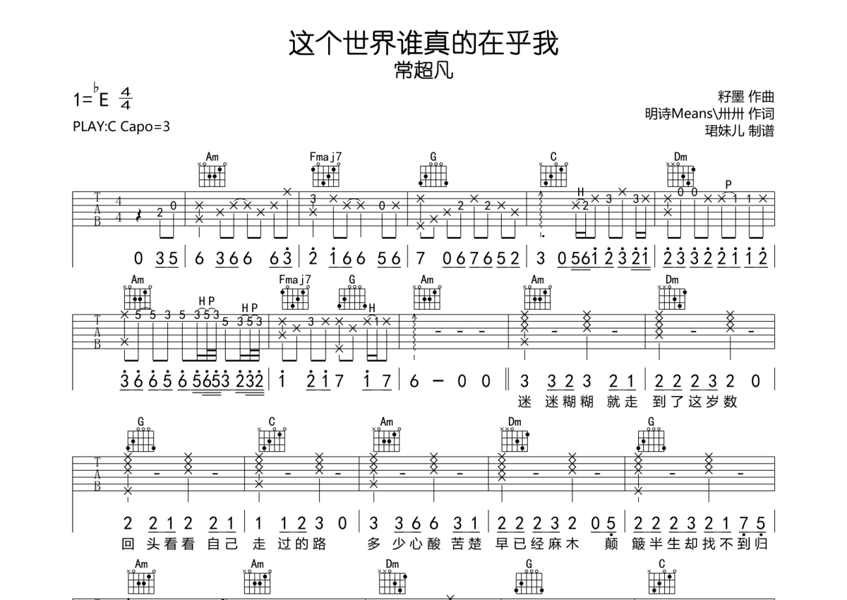 • 这个世界谁真的在乎我吉他谱 - 常超凡 - C调吉他弹唱谱第1张